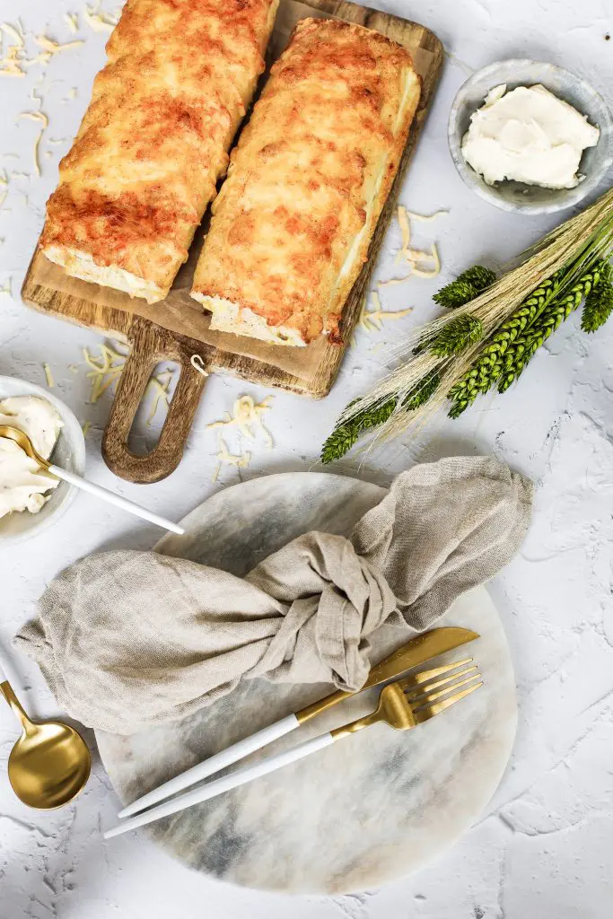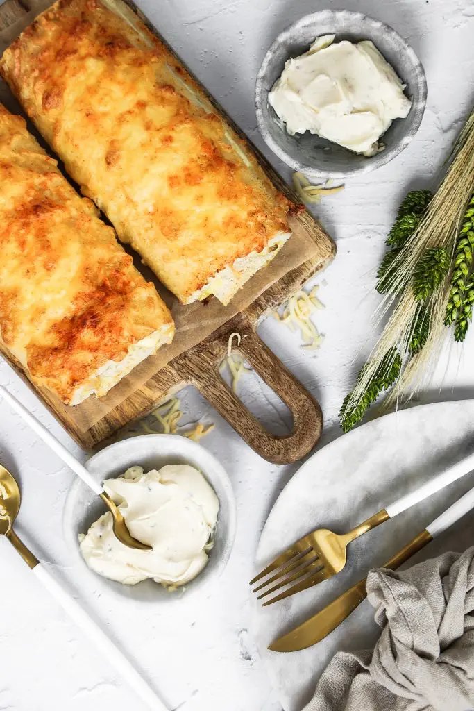 - Stingið í 195-200 °C heitan ofninn á blæstri í 15-20 mínútur eða þar til er orðið gyllinbrúnt og berið fram heitt.