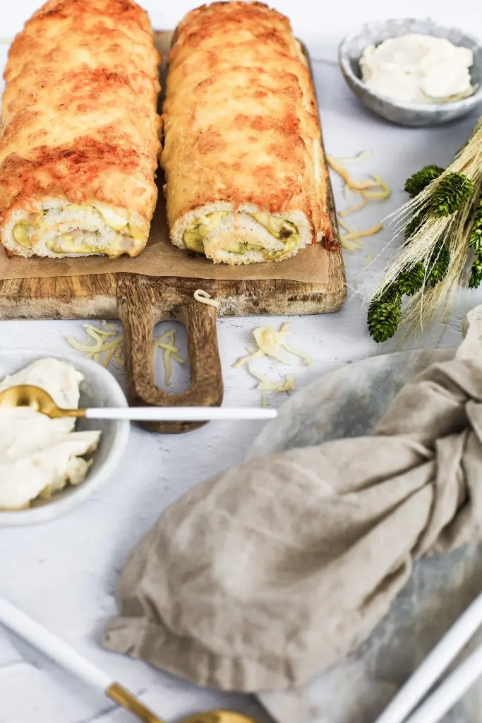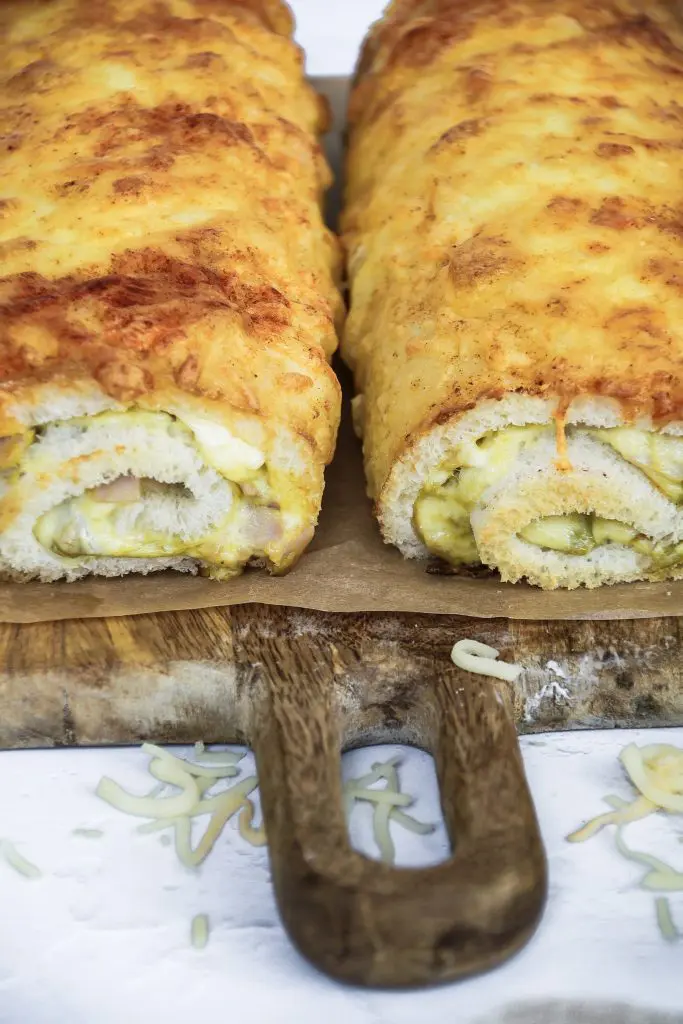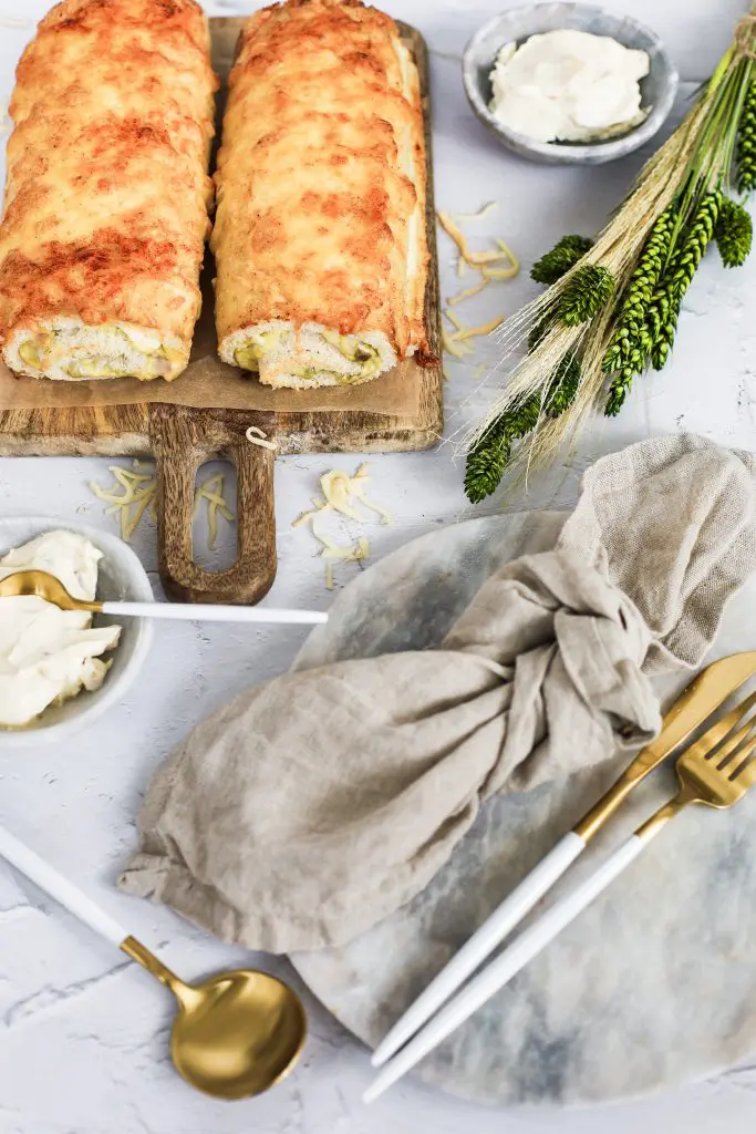 - Rúllið næst brauðinu upp og endurtakið við öll 3 brauðin sem eru eftir
