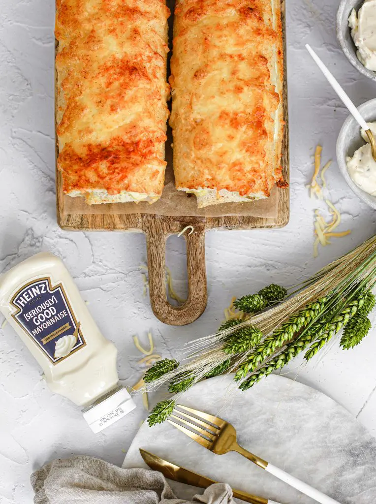 - 2,5 dl Heinz majónes og auka til að smyrja á brauðið fyrir hitun