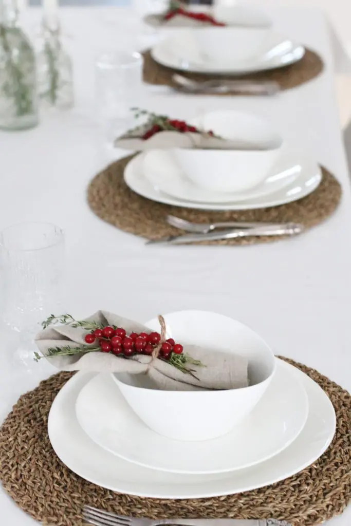 Náttúrlegur efniviður eins og kryddjurtir, ber og greni er það sem ég kýs í jólaskreytingar og náttúrulegir litir. Jólamaturinn sjálfur er síðan svo fallegur og litríkur að það þarf ekki meira til.