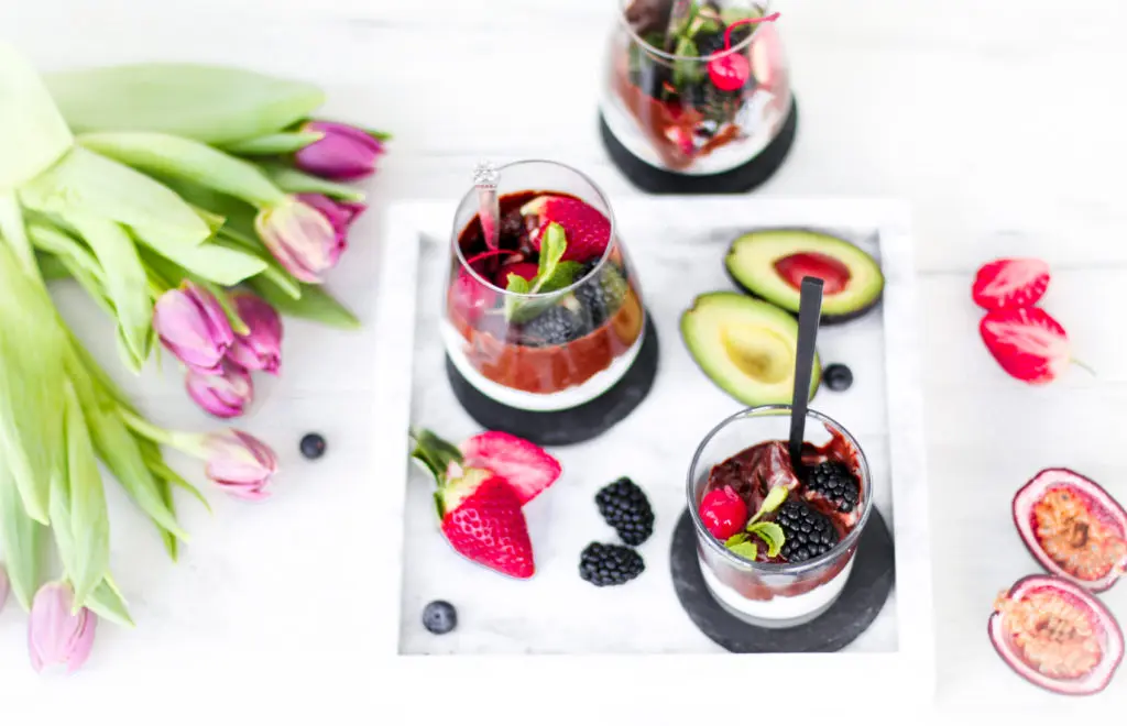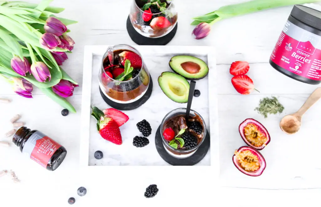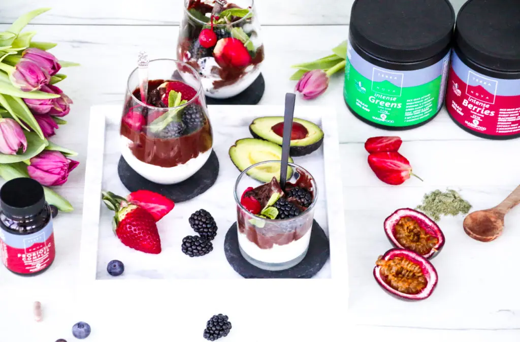 Allt sem er í þessum holla súkkulaðibúðing er gott fyrir kroppinn. Góðar fitur, lífrænt kakó sem er stappað af magnesíum, góðgerlar frá frábæra merkinu Terranova og Intense Berries duftið þeirra.