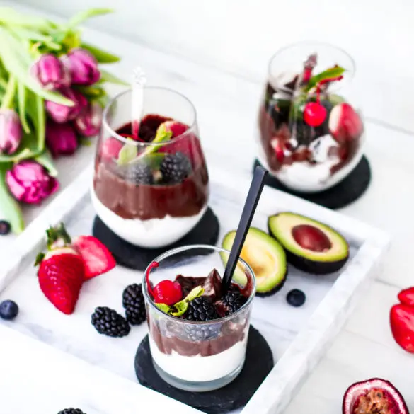 Allt sem er í þessum holla súkkulaðibúðing er gott fyrir kroppinn. Góðar fitur, lífrænt kakó sem er stappað af magnesíum, góðgerlar frá frábæra merkinu Terranova og Intense Berries duftið þeirra.
