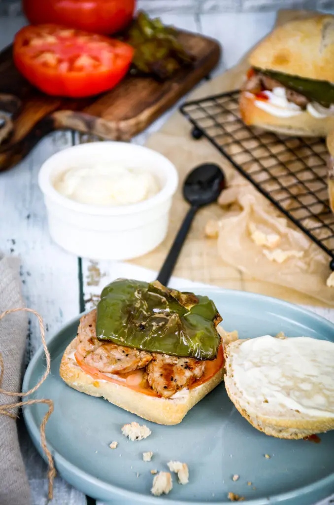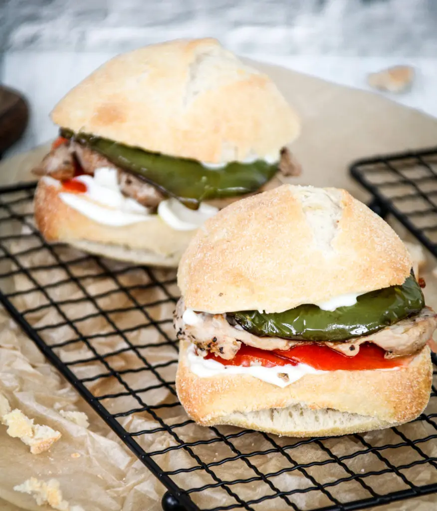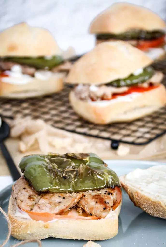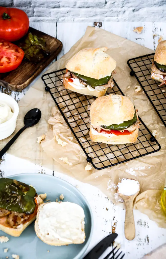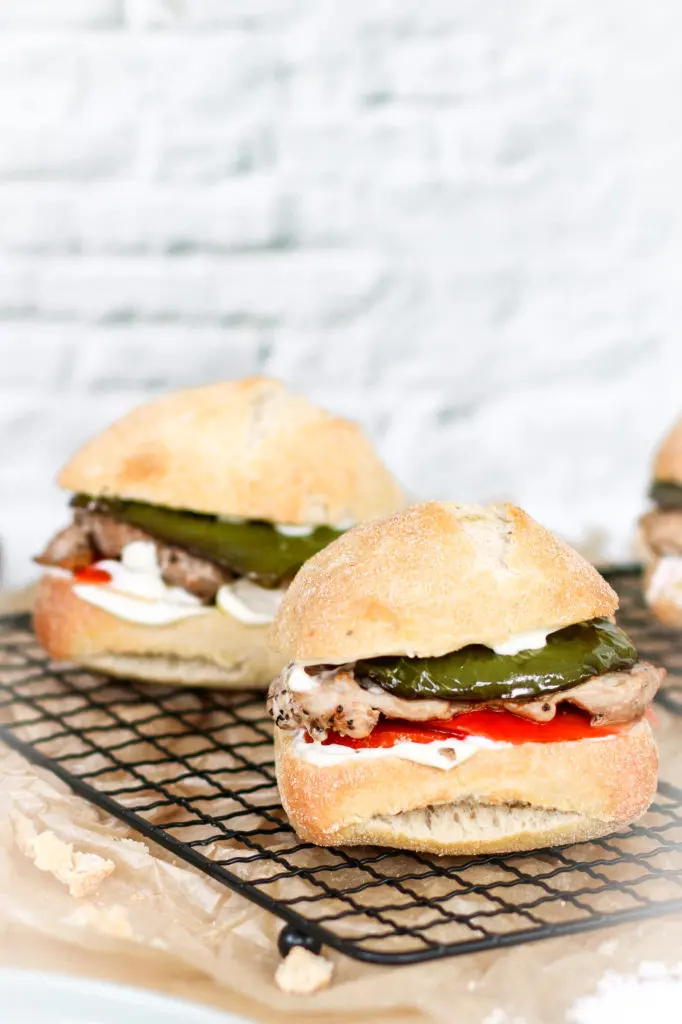 Brakandi súrdeigsrúnsykki nýkomið úr ofninum, með mjúkri lundinni og steiktri grænni papriku á spænska mátann getur ekki klikkað.