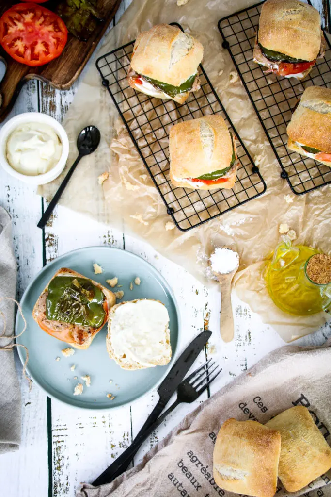 Ekki breyta neinu og alls ekki sleppa grænu paprikunni en hún gerir algjört undur fyrir bocadillo með lomo. Mér finnst best að nota mayones frá erlendu merki því það gerir samlokuna líkari þeim sem maður fær á Spáni. Ég get lofað að þetta mun hitta í mark enda með endæmum gott. Súrdeigsrúnstykkin voru alveg fullkomin í þessa samloku og mæli ég með að þið notist við það.
