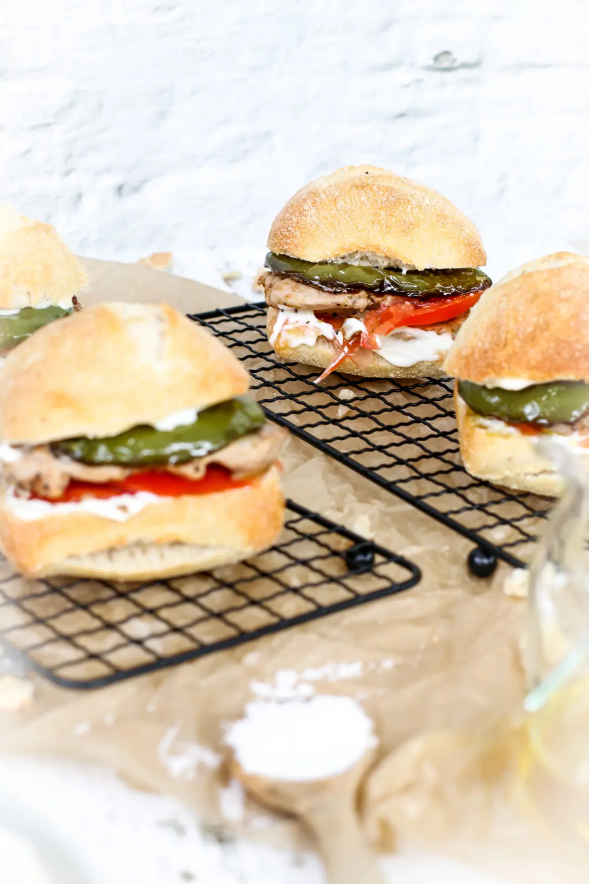 Brakandi súrdeigsrúnsykki nýkomið úr ofninum, með mjúkri lundinni og steiktri grænni papriku á spænska mátann getur ekki klikkað.