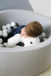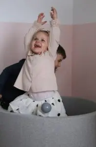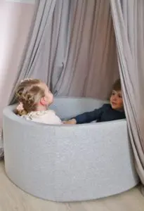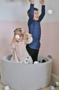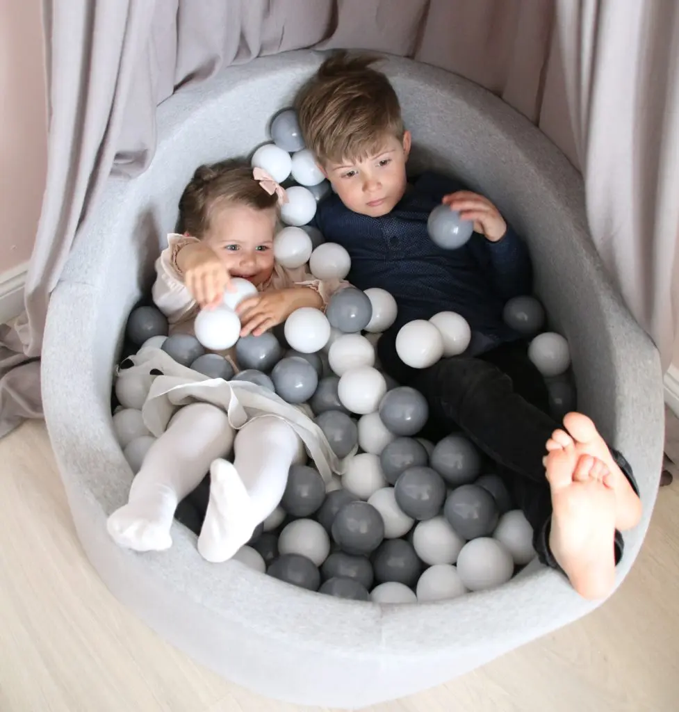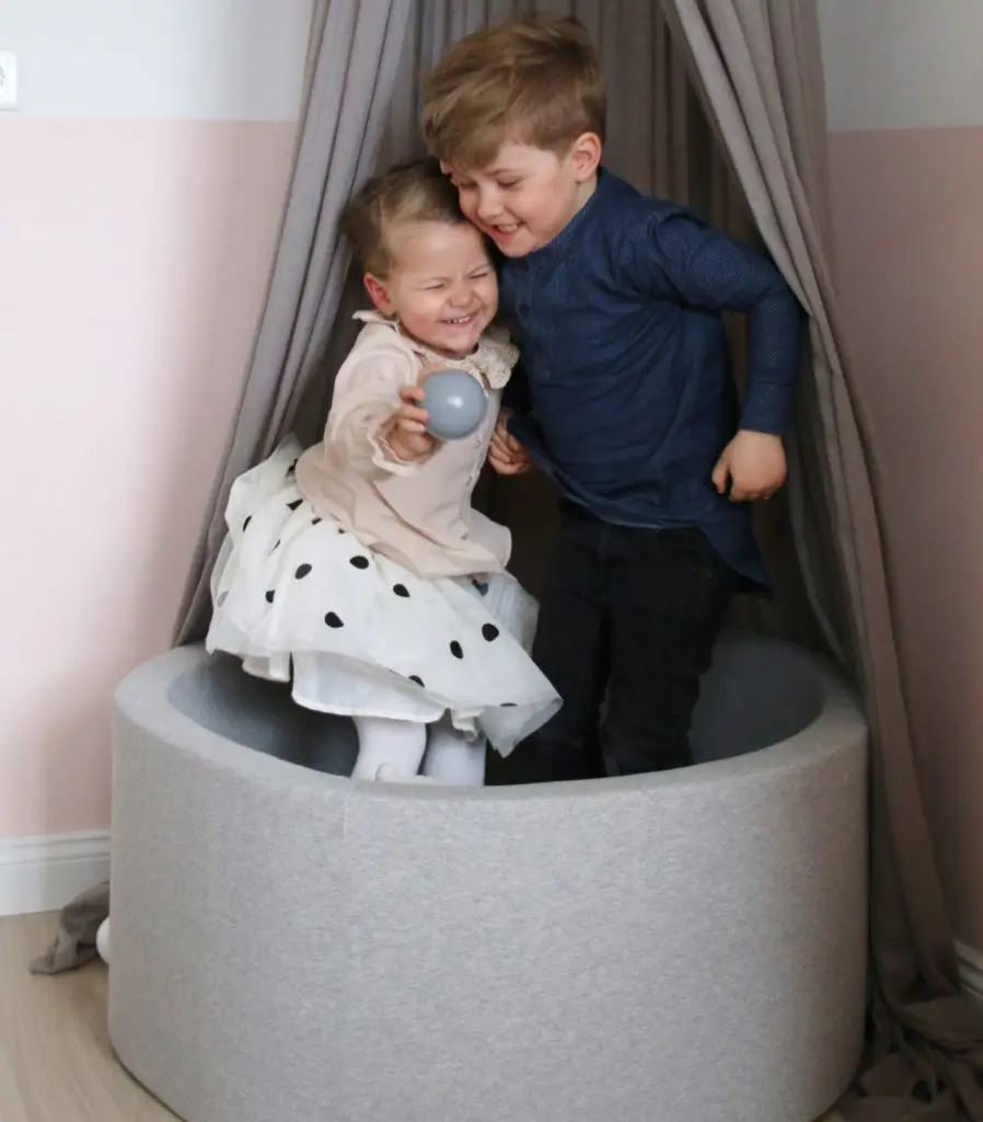 Hæð gryfjunnar er 40 cm og ummálið er 90 cm, svo það fer einnig vel í minni herbergjum og er hæfilega stórt fyrir eitt barn. Tvö jafnvel þrjú komast þó einnig vel þar ofan í. Krakkarnir mínir eru þarna oft tvö og tvö saman að leika sér og skemmta þau sér alveg konunglega á meðan.