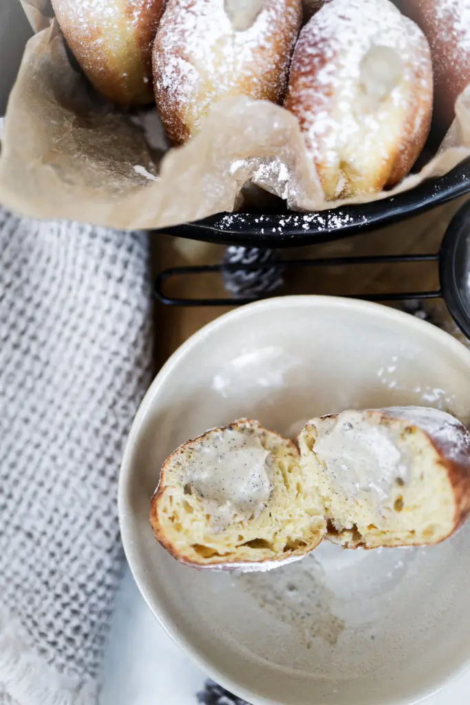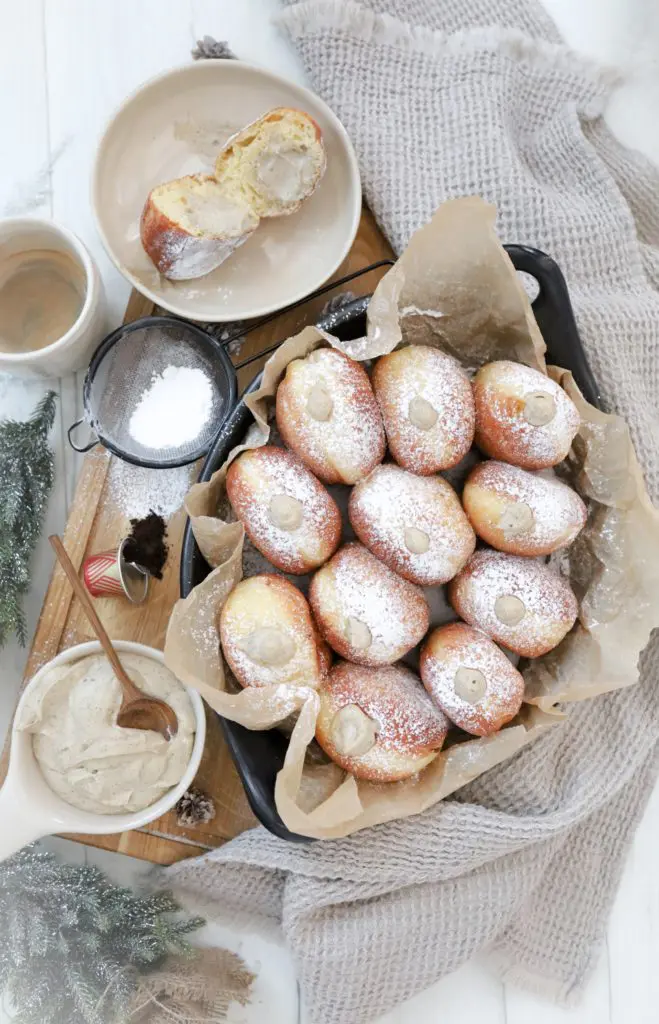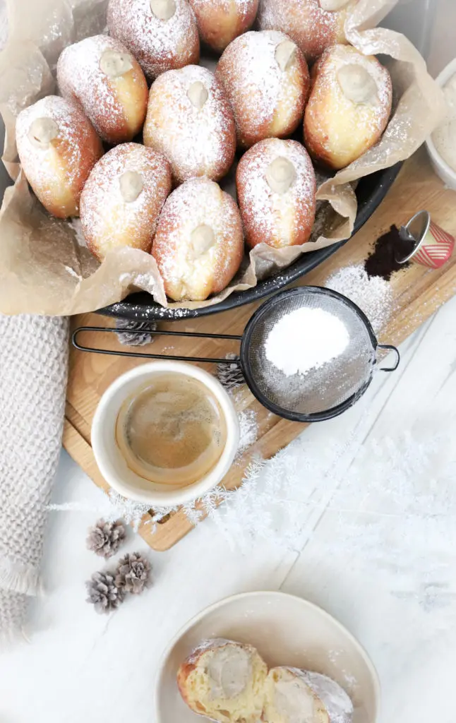 Bombolini bollurnar eru dásamlega góðar, léttar í sér og með keim af appelsínu en ég notaði appelsínubörk í þær sem mér finnst gera þær ögn jólalegar.