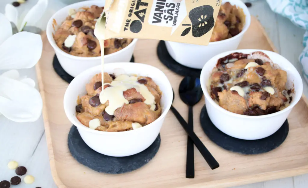 Til að toppa svo þetta allt saman notaði ég vanillusósuna frá Oatly sem er ein sú besta sem ég hef smakkað. Ég get lofað að þið hafið ekki hugmynd um að þið séuð að borða jurtavörur í stað mjólkurvara.