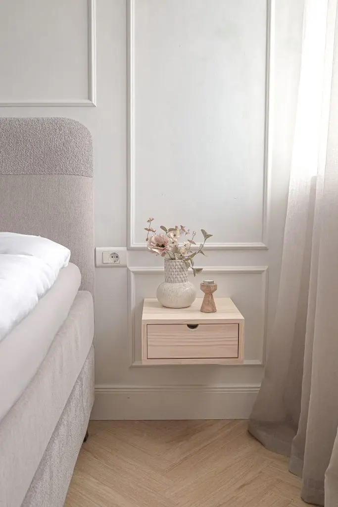 Ég er í skýjunum með náttborðin, en þau eru á góðu verði og auðveld i uppsetningu og eins og flest annað sem ég er með í herberginu núna, fást þau einni í Myrkstore en hér er linkur inn á þau.