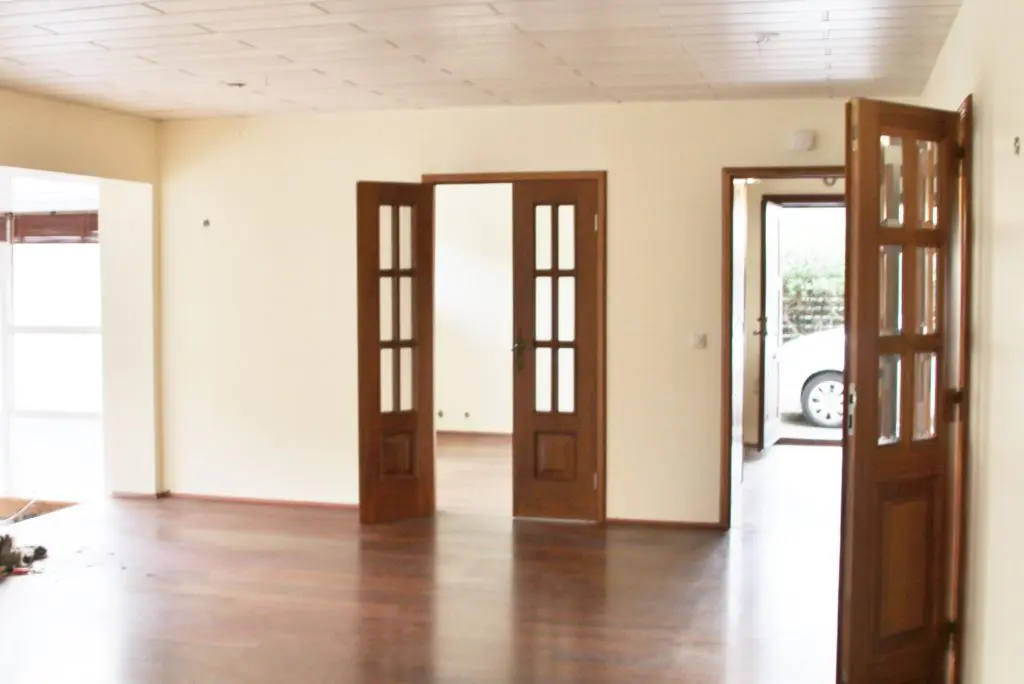 Eins og áður hefur komið fram þá var húsið frekar dimmt og allt mjög dökkt hér inni. Það að það væru tveir lokaðir gangar, forstofa og svefnherbergisgangur, gerði það að verkum að það þrengdi að stofunni og hún virkaði lítil og dimm. Einnig var hurðin inn í eldhús frekar smá þrátt fyrir að vera tvöföld og var þetta svoldið svona stór geimur með hurðum á.