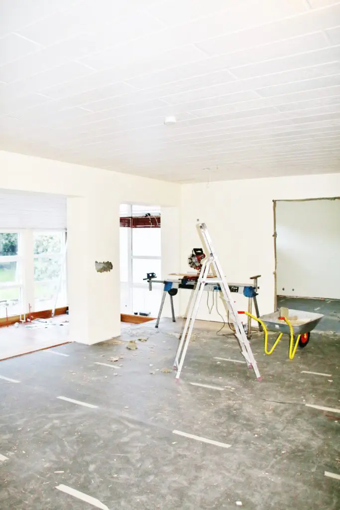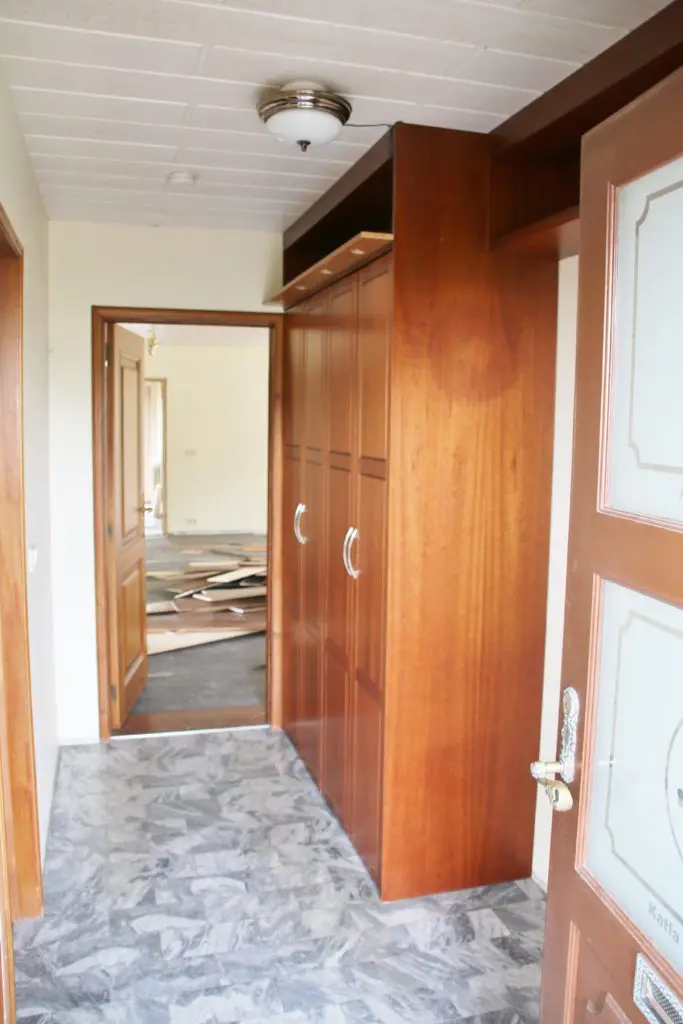 Í veggnum sem við tókum niður úr forstofunni voru rafmagnsleiðslur og þurftum við rafvirkja til að þræða rafmagnið  í loftið og draga í gegn. Það var sem betur fer ekki mikill kostnaður og sluppum við því mjög vel. Einnig vorum við afar heppinn að panilllinn lá alveg yfir húsið og hefur greinilega verið settur upp áður en veggir voru reistir því panillinn var líka undir hurðarveggjunum. Það reyndar mynduðust smá sár eftir veggina en það löguðum við með bílasparsli.