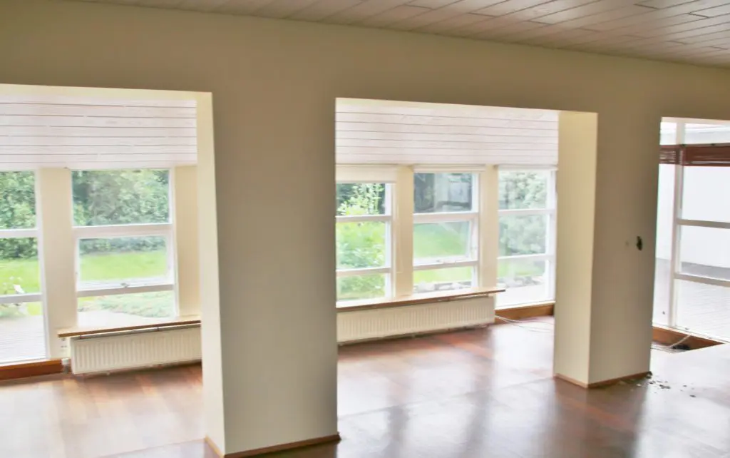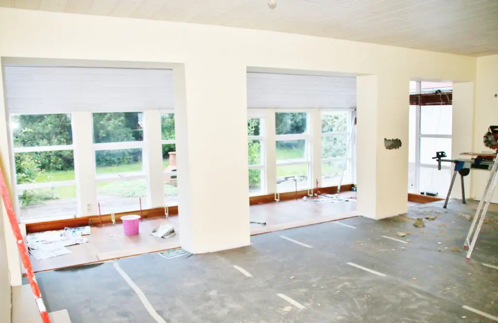 Við gerðum mest alla vinnuna sjálf en húsið er steypt að utan en með timbri að innan og því var það frekar einfalt mál að gera það, auk þess sem burðarsperrur liggja í þakinu og var því mjög auðvelt að taka niður veggi.  Það að burðarsperrur séu í þaki þýðir að það séu engir burðarveggir inni í húsinu á milli rýma.