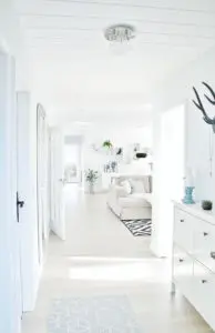 Hér er forstofan og horft inn í stofu og gang