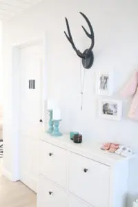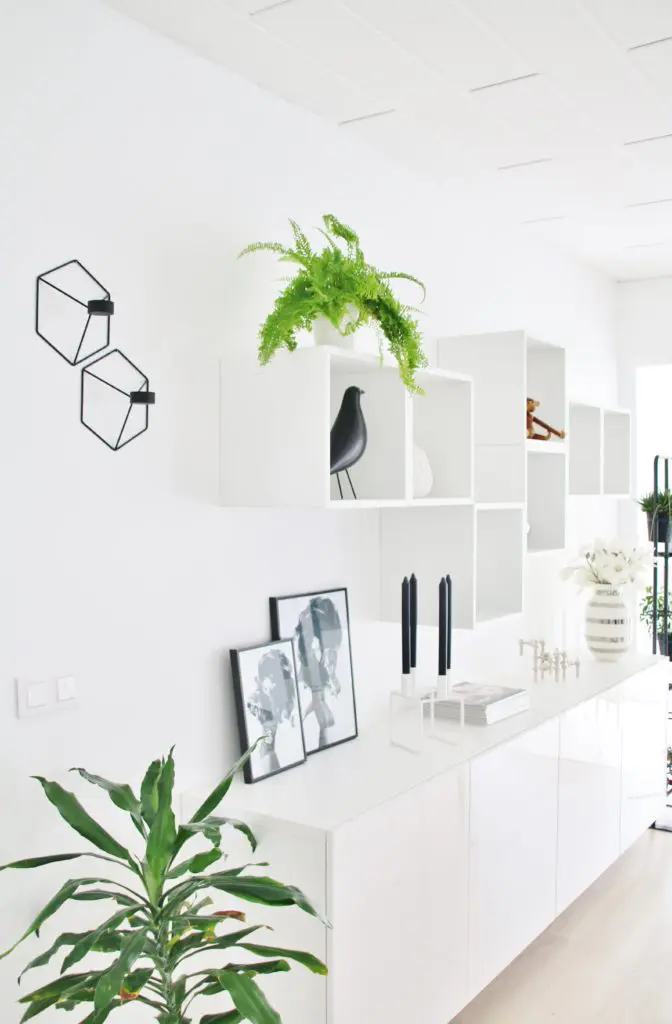 Þetta er svo ótrúlega fallegt hjá þér. Má ég forvitnast hvar þú keyptir hvíta skenkinn undir kössunum í stofunni?