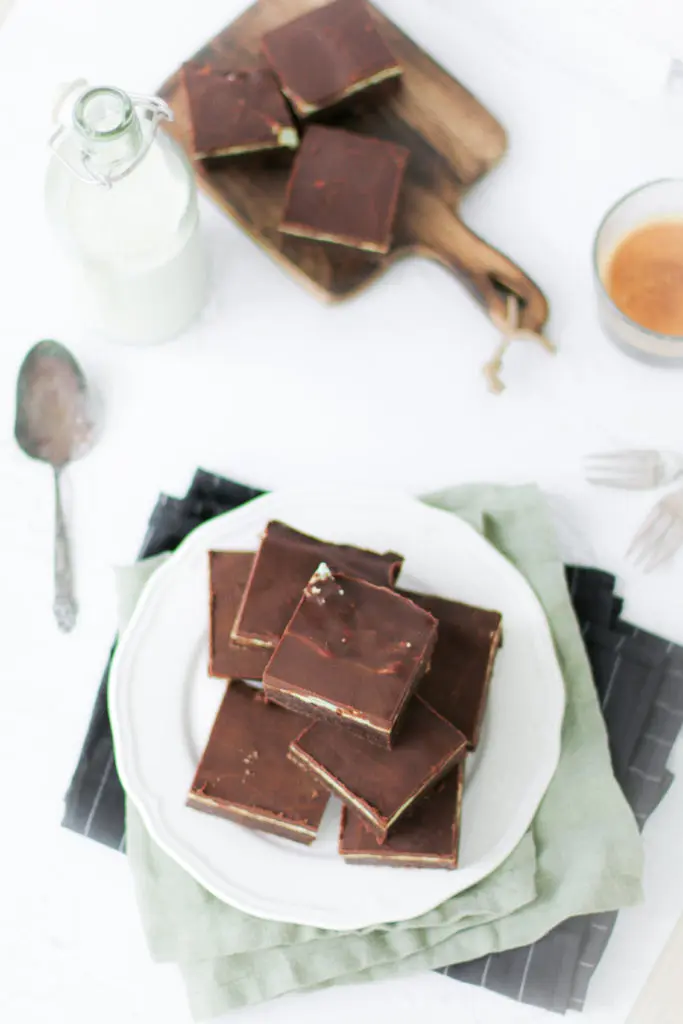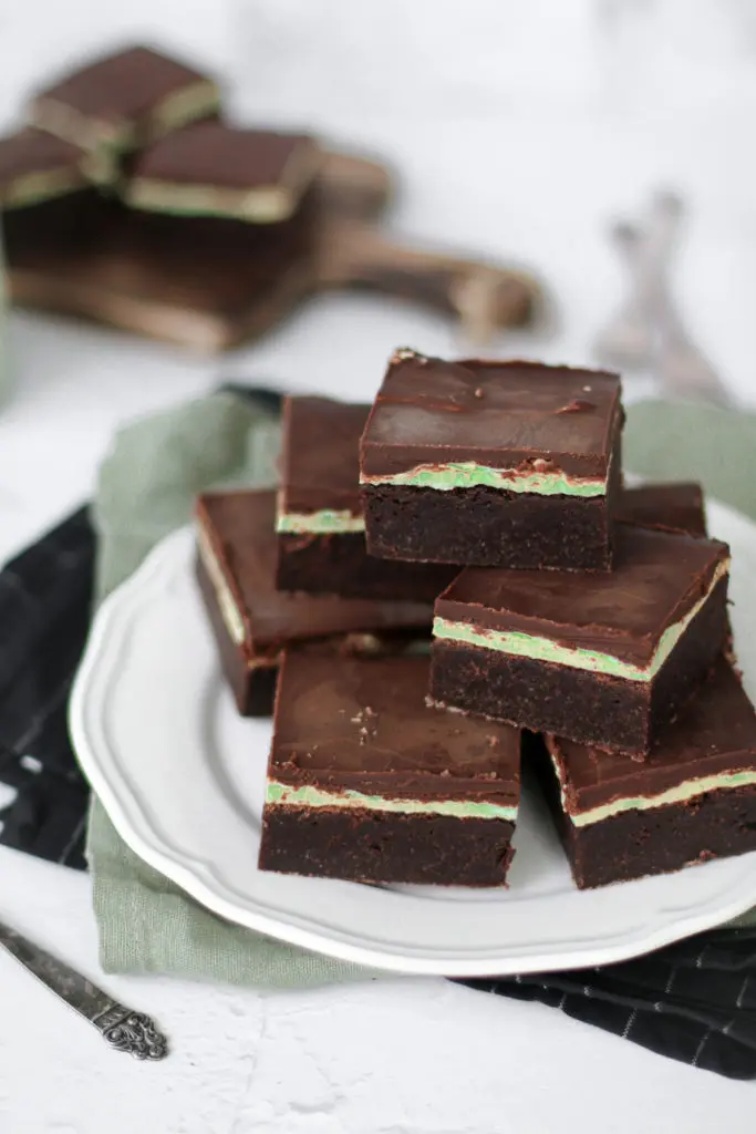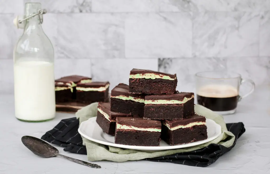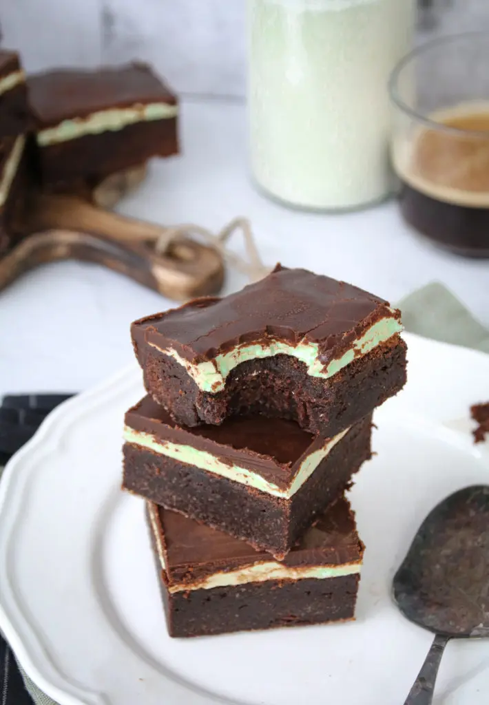 Þessar Brownie kökur eru smá öðruvísi en fólk á að venjast en myntukremið á milli er eldgömul uppskrift frá 1983 af myntukremi sem mamma gerði alltaf í afmælum mínum þegar ég var krakki.