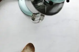 Við blönduðum smá blöndu í einu með mæliglösum sem ég keypti í gæludýrabúð og sheikglösum úr Bónus. Svo smáhellti ég yfir á part af plötunni og slétti úr því með svamp pensli sem ég fékk í Söstrene Grene. Þetta gerði ég svo aftur á næsta part við hliðina á og passaði að lakkið færi alveg yfir skilin til að fá jafna og slétta áferð. Þetta er svo endurtekið þar til öll platan er orðin þakin lakki.