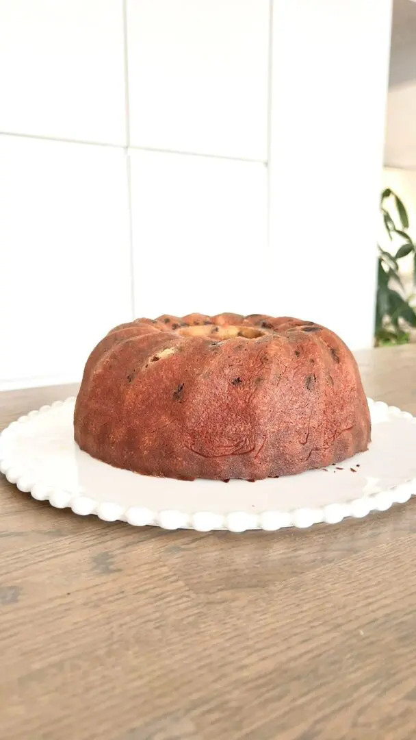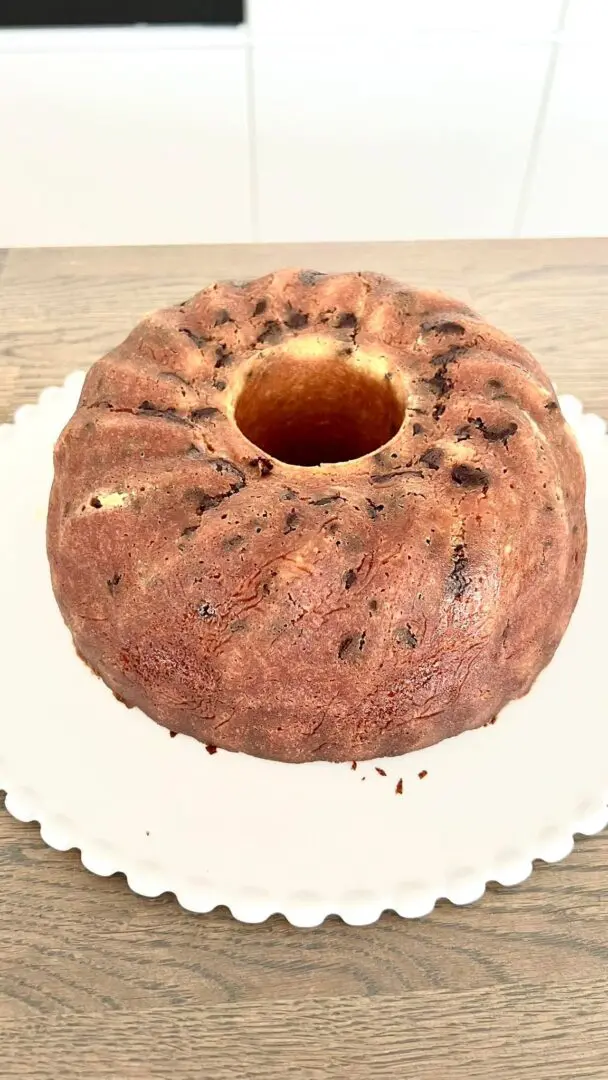 Ég ákvað hins vegar að notast við annars konar hringform með gati í miðjunni, því það sem ég notaði síðast er keypt í Ameríku og er ögn víðara og grynnra. Núna hins vega notaðist ég við form sem fæst víða hér í verlsunum á Íslandi og er það minna í ummáli og dýpra og því þykkara magn af deigi sem fer í það.