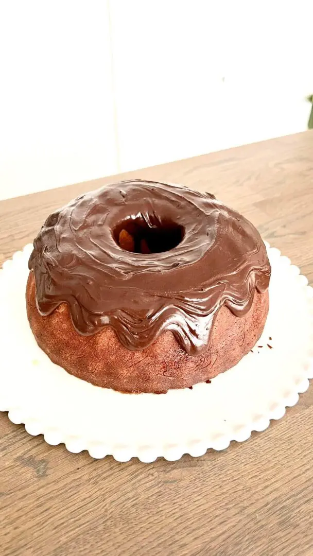 - Hellið nú í formið og bakið í miðjum ofninum í 55 - 65 mínútur en gott er að stinga prjón í kökuna og ef hann kemur hreinn upp úr er kakan til, ef kemur deig á hann er gott að bæta við 3 mínútum í senn þar til prjónninn kemur hreinn upp þegar stungið er í kökuna.