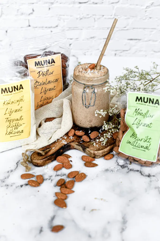 Hér nota ég að sjálfsögðu vörurnar frá MUNA sem eru í senn aðgengilegar sem og á góðu verði fyrir lífænt ræktaðar gæðavörur.