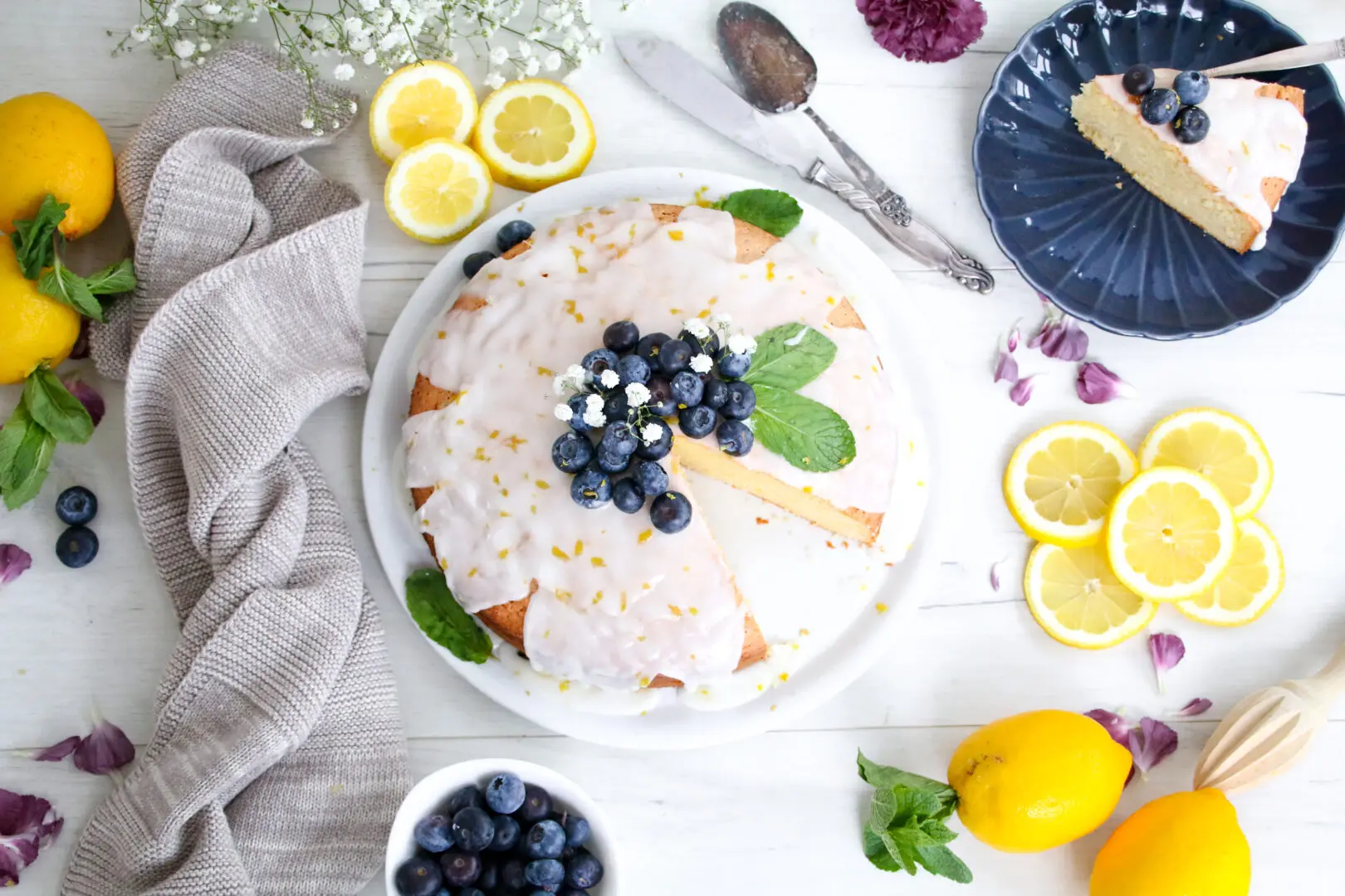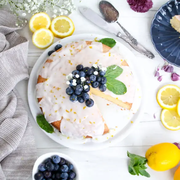 4. Fallegt að skreyta svo með bláberjum enda passa þau afar vel með sítrónubragðinu