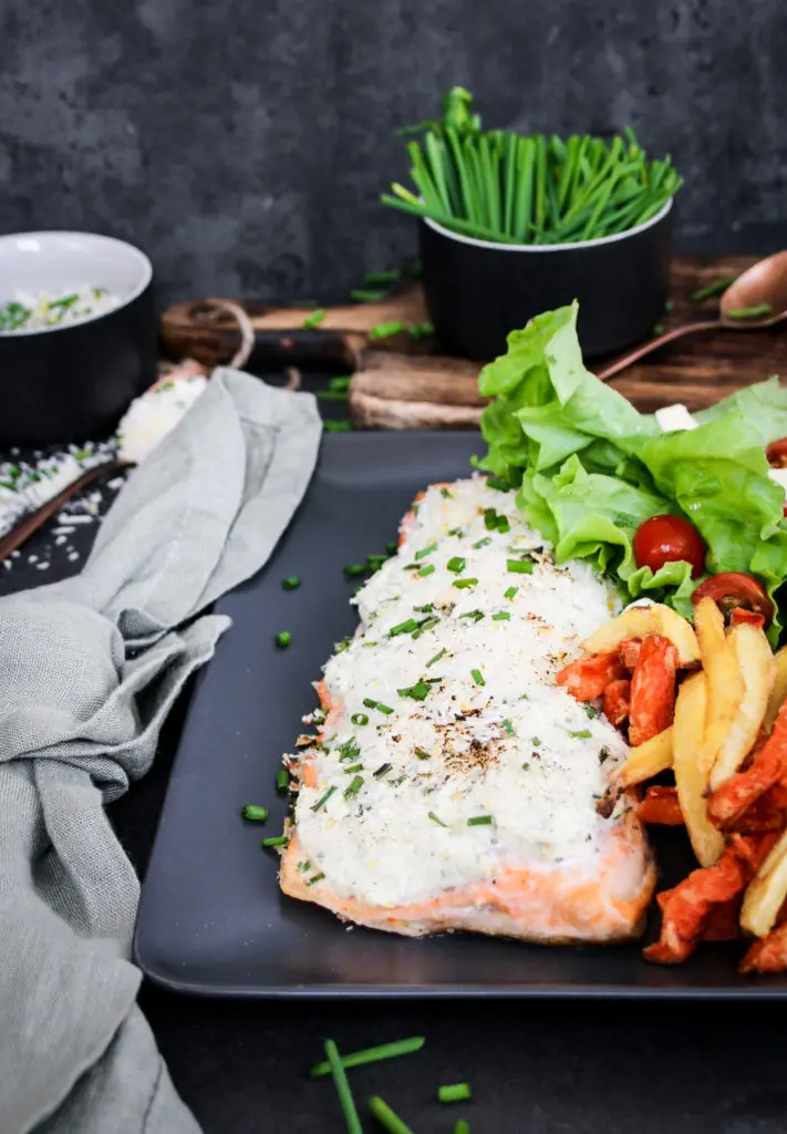 Bleikjuna smyr ég með uppáhalds rjómaostinum mínum frá Philadelphia eða með hvítlauk og kryddjurtum, svo strái ég panko raspi með ögn af graslauk og sítrónuberki yfir og inn í ofn.