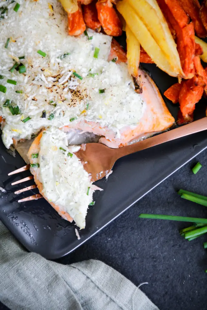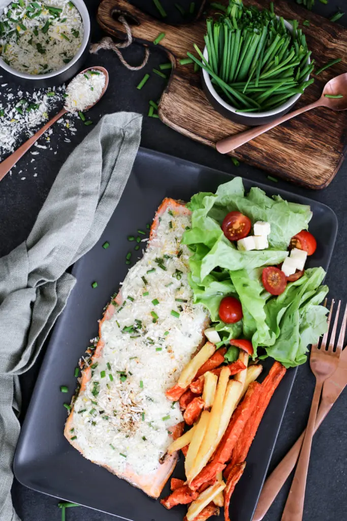 - Byrjið svo á að setja franskarnar inn í ofn meðan bleikjan og salat er útbúið því þær þurfa lengri tíma