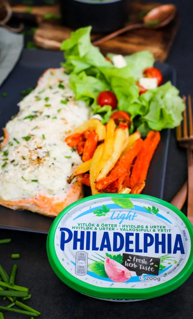 - Smyrjið vel af Philadelphia ostinum yfir flökin helst í þykku lagi