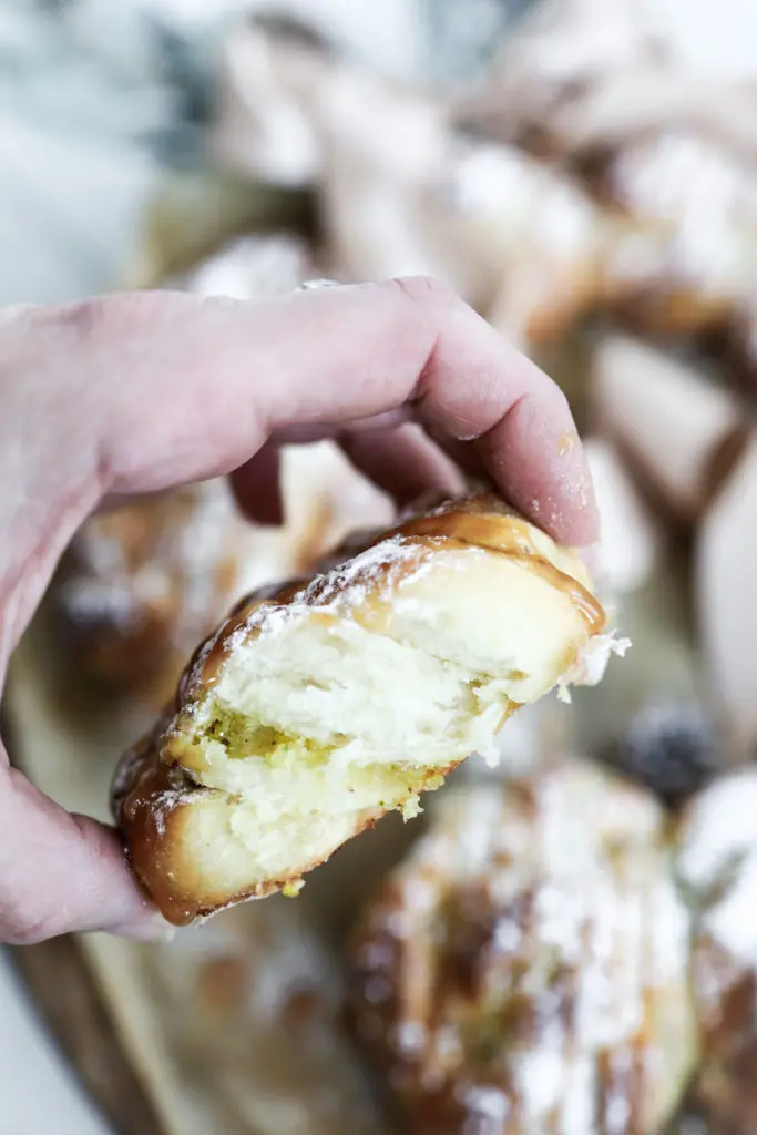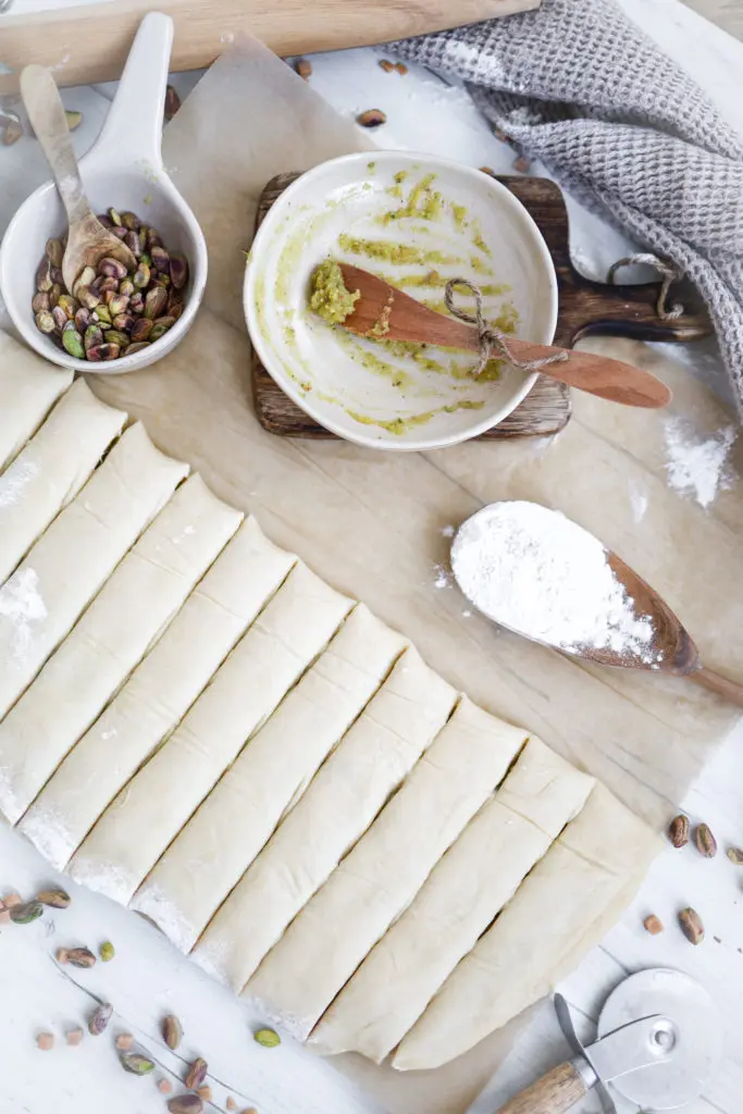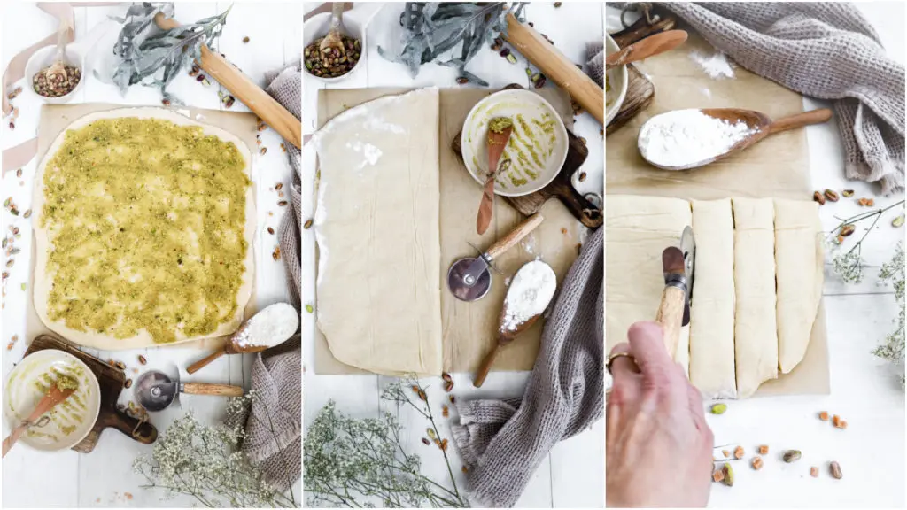 Getið einnig séð video hér af aðferðinni inn á Instagram undir pistasíusnúðar.