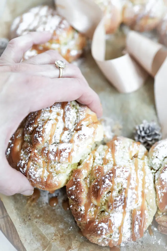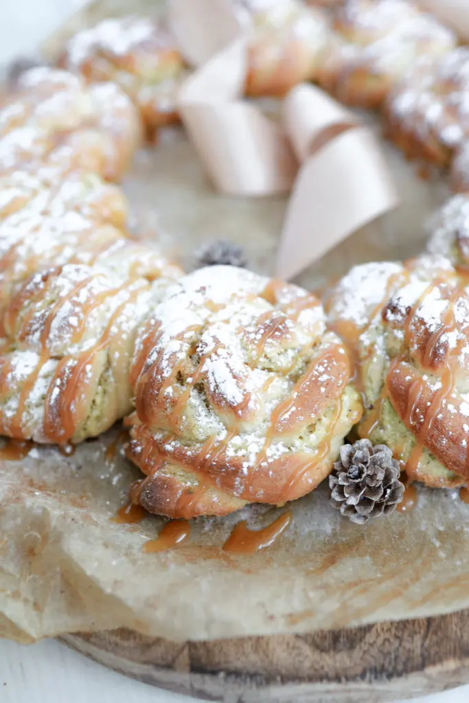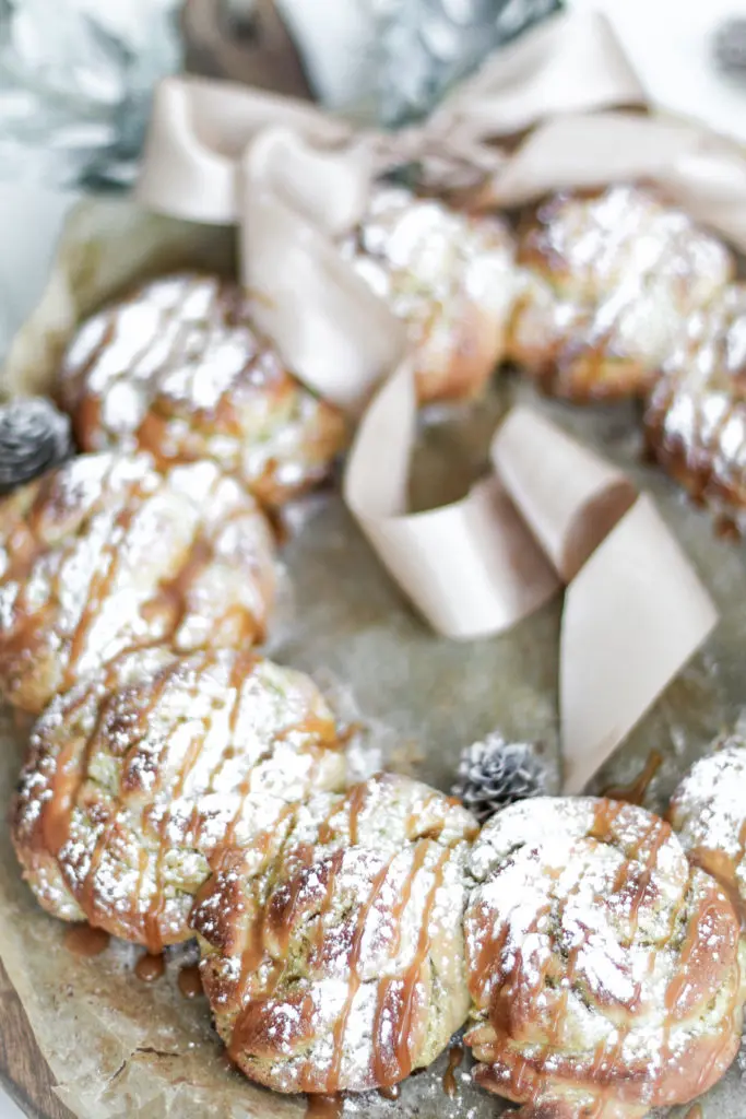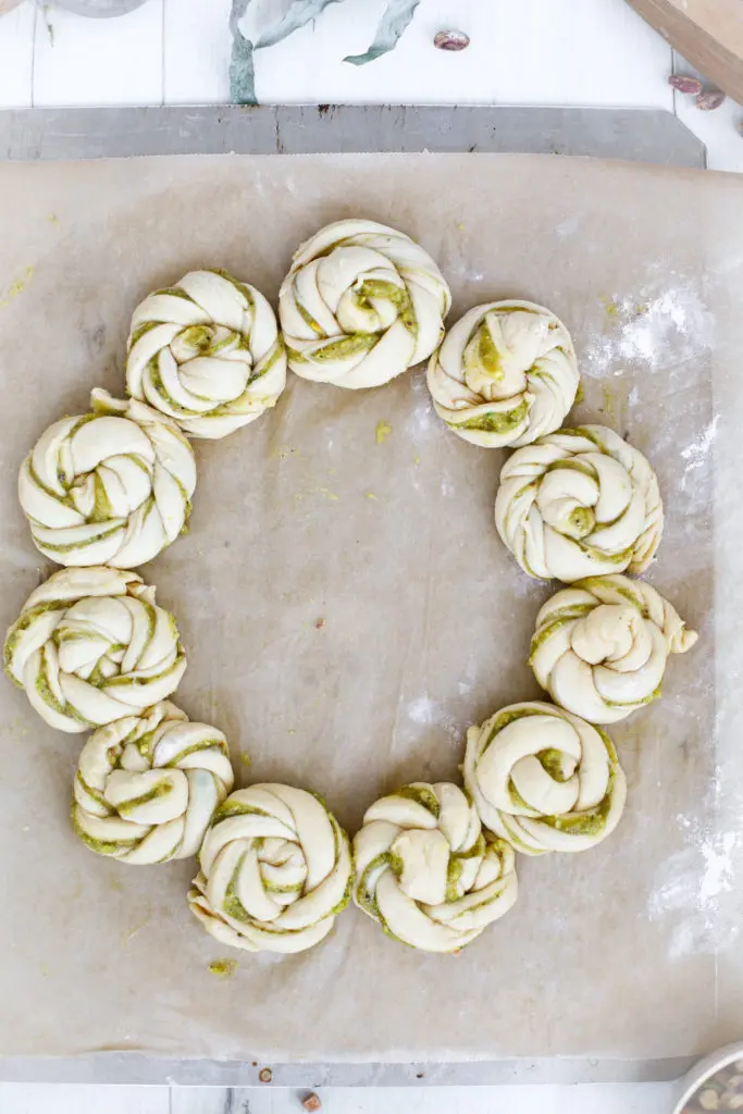 - Ef þið viljið gera krans er snúðunum raðað í hring klesst við hvorn annan annars má líka gera bara staka snúða