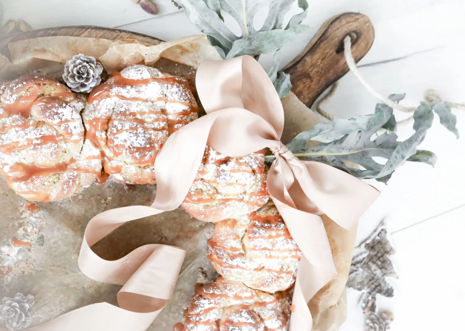 - Sáldrið flórsykri gegnum sigti á snúðana þegar þeir hafa kólnað og setjið síðast karamellubráðina yfir
