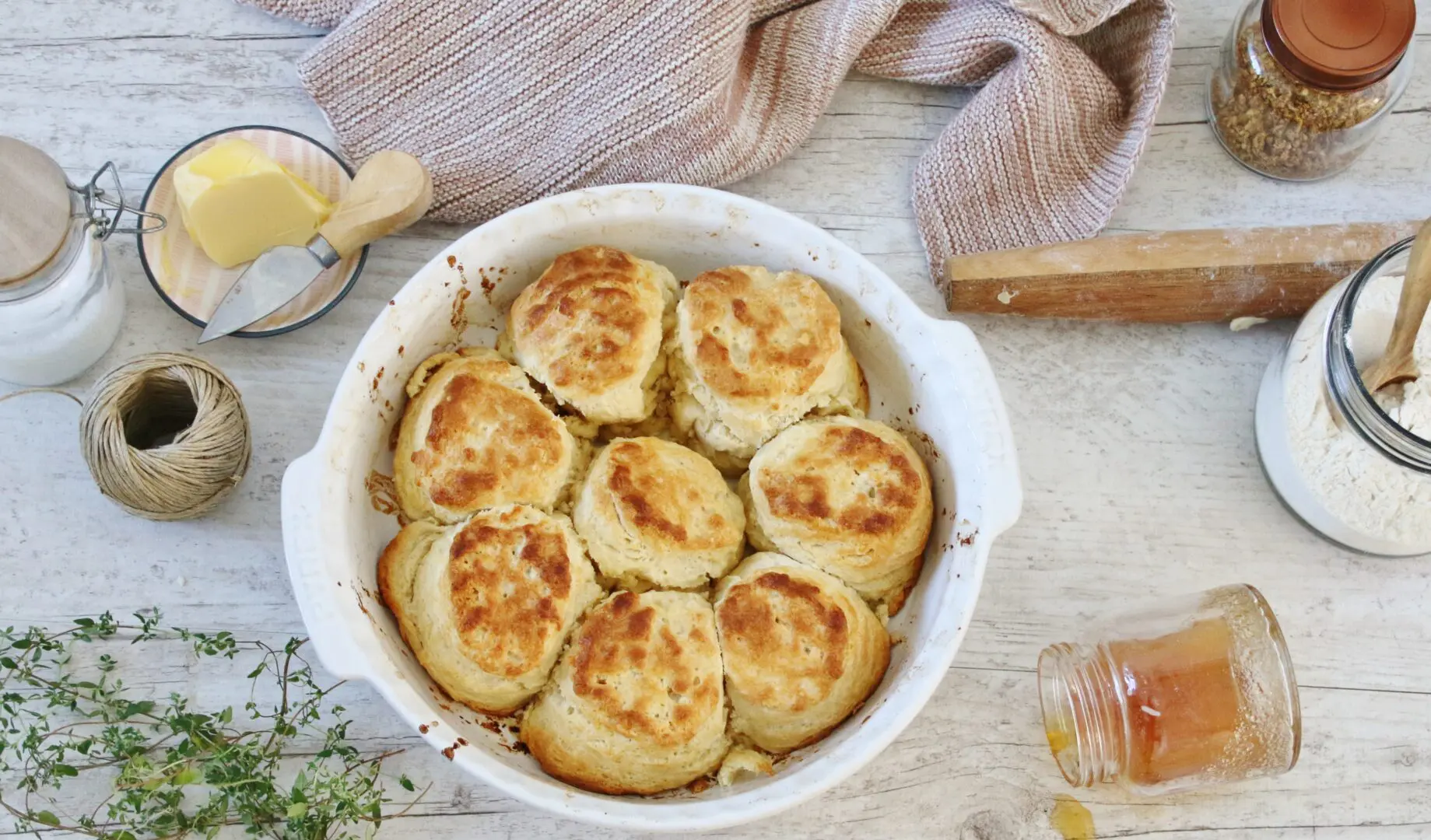 Það má alveg segja að þessar frábæru kexbrauðbollur, sé ein af þessum uppskriftum sem tilheyra Suðurríkjastílnum. Þær eru mikið borðaðar með steiktum kjúkling eða fried Chicken.