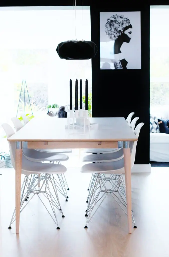 Það er kannski alveg smá klikkað að vera nýbúin að taka heilt hús í gegn og mála mestallt í hvítu og ákveða svo allt í einu að mála svart. Ástæðan fyrir því að ég ákvað í byrjun að mála mest í hvítu og ljósgráu var að þegar við keyptum húsið var allt svo svakalega dökkt og dimmt hérna inni. Innréttingar, hurðir og gólfefni voru allt úr mjög dökkum við. Markmiðið hjá mér var því að reyna að birta upp húsið eins mikið og ég gæti. Fyrir utan markmiðið þá hef ég alltaf líka verið mjög hvít, sérstaklega þegar kemur að húsgagnavali.