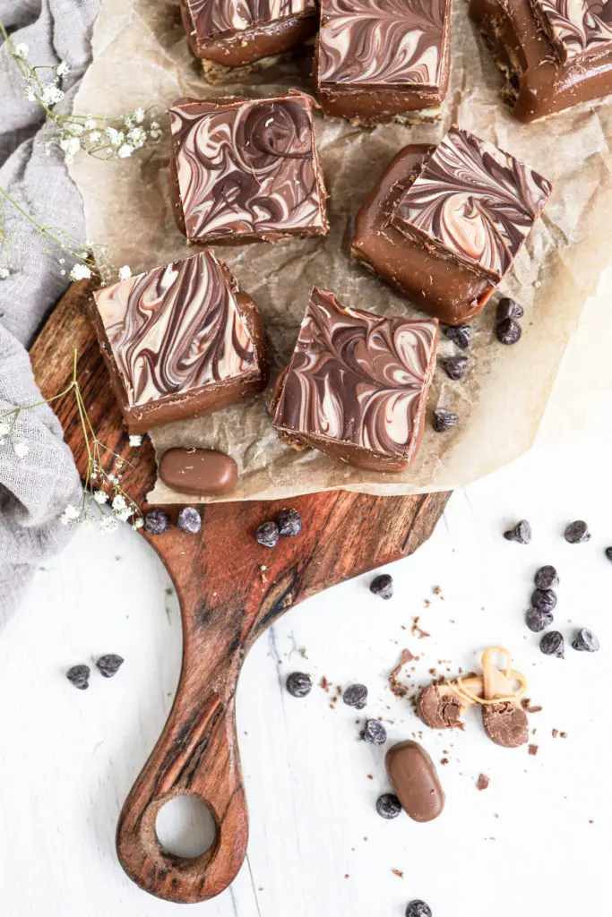 Hvort sem þú ert að fara að halda veislu eða langar bara að eiga eitthvað gott til að maula á, mæli ég með að þú prófir þessa dýrðar karamellubita sem engin verður svikin af.