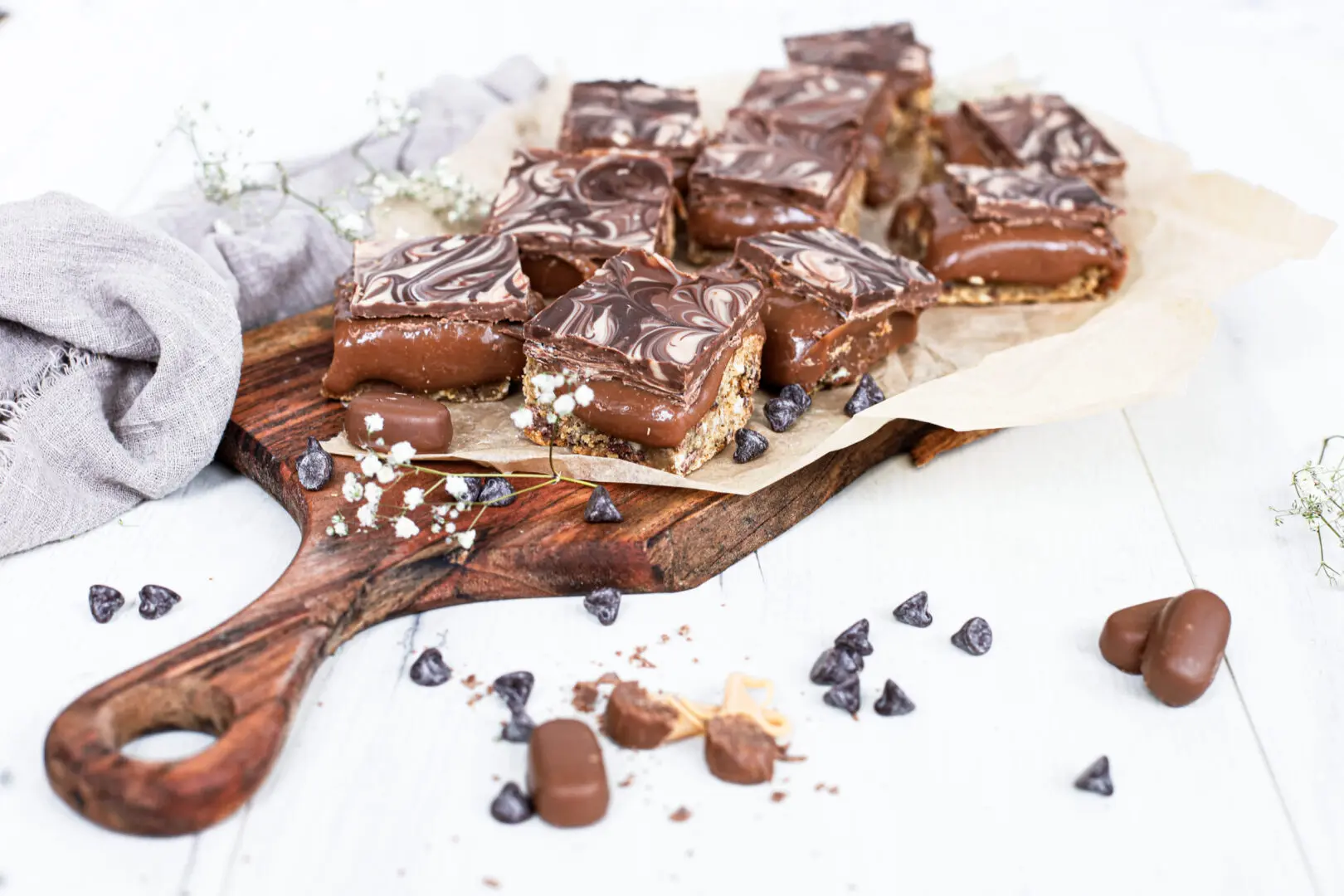Hvort sem þú ert að fara að halda veislu eða langar bara að eiga eitthvað gott til að maula á, mæli ég með að þú prófir þessa dýrðar karamellubita sem engin verður svikin af.