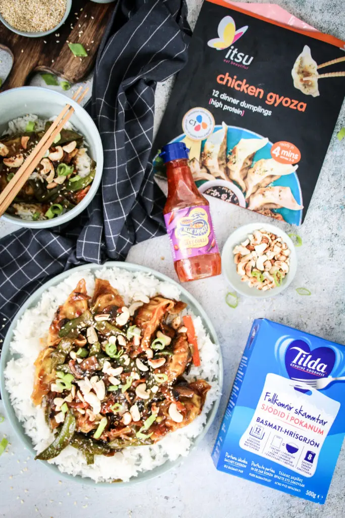 Ég notaði Itsu dumplings með kjúklingafyllingu en einnig er hægt að fá með rækjufyllingu og grænmetis. Ég er að segja ykkur það að þetta dumplings er það besta sem ég hef smakkað tilbúið.