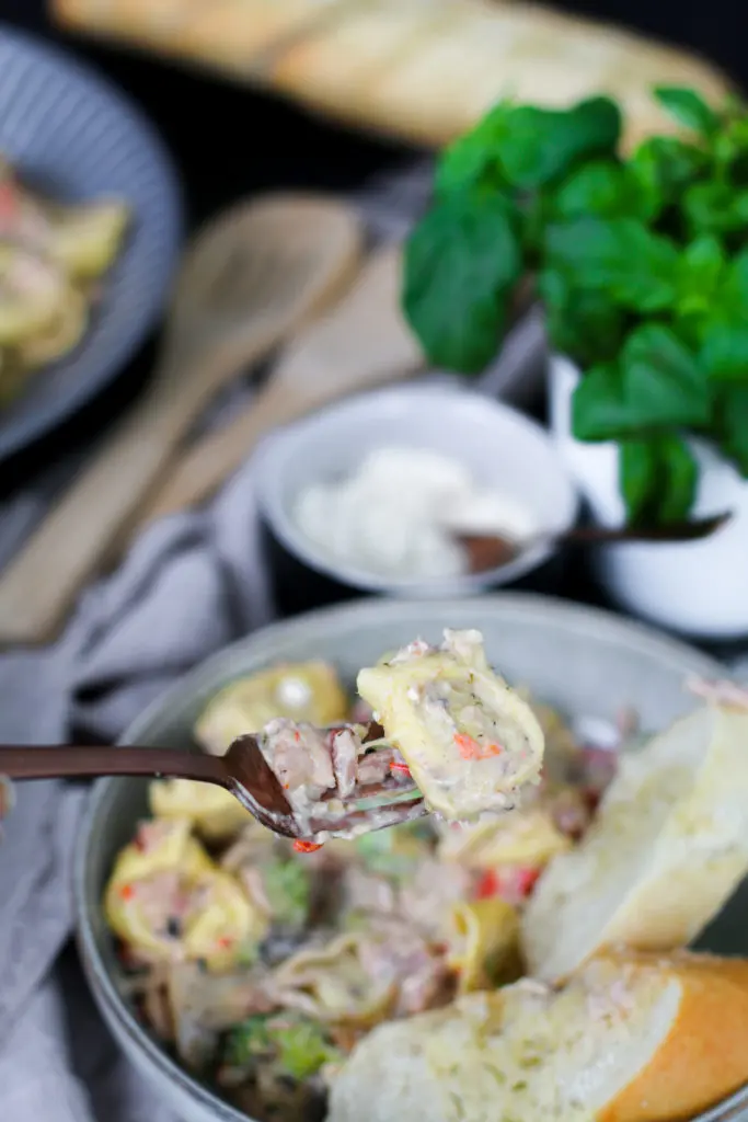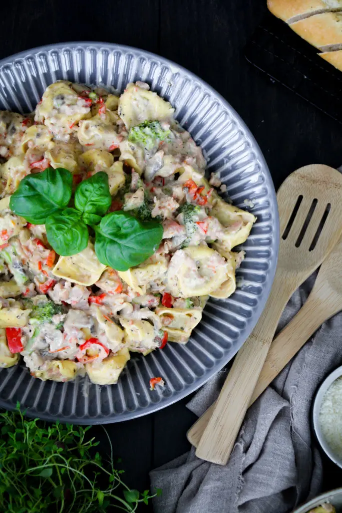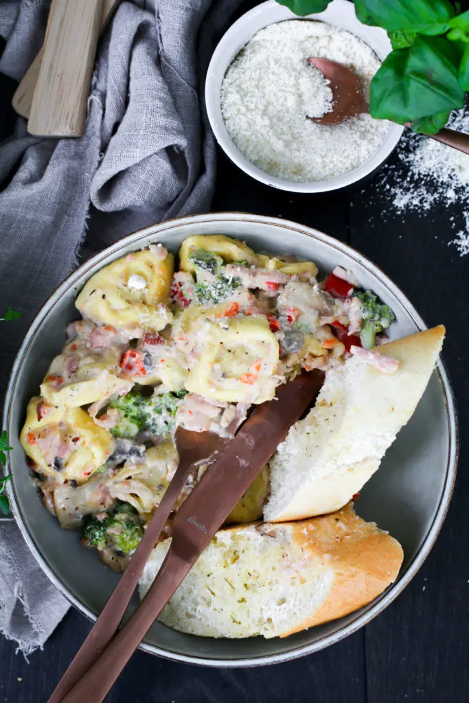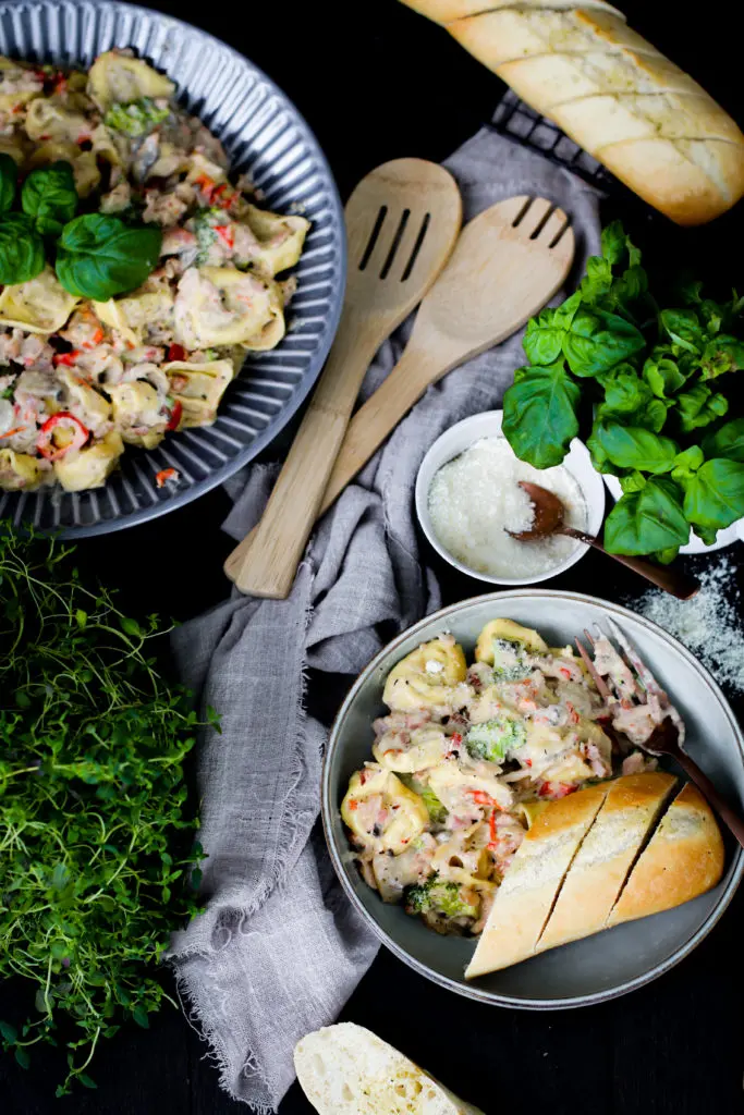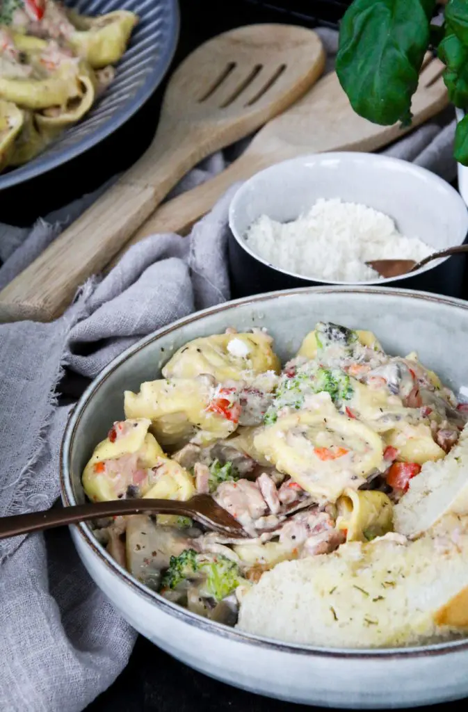Í þennan rétt notaði ég tortellini með skinkufyllingu en vá hvað það er gott. Hvert tortellini er risa stórt og fullt af fyllingu, dýrð í hverjum bita.