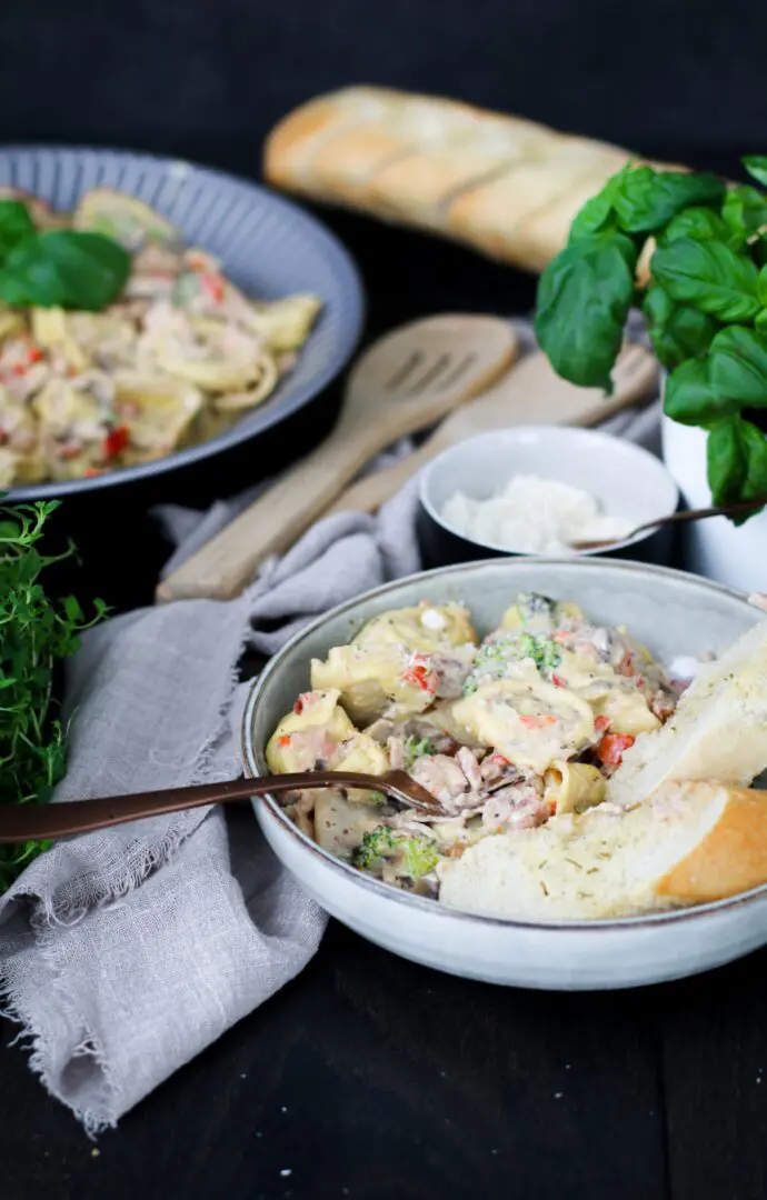 Í þennan rétt notaði ég tortellini með skinkufyllingu en vá hvað það er gott. Hvert tortellini er risa stórt og fullt af fyllingu, dýrð í hverjum bita.