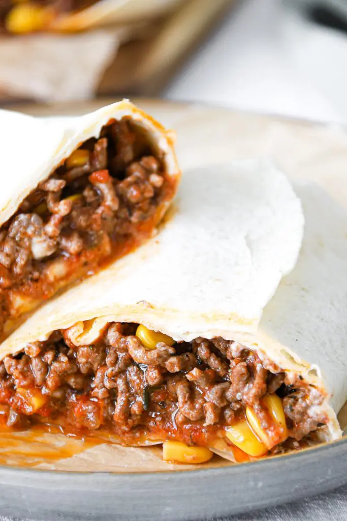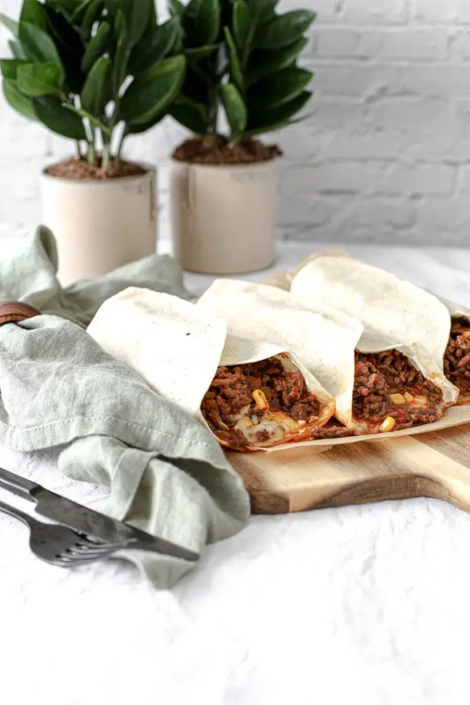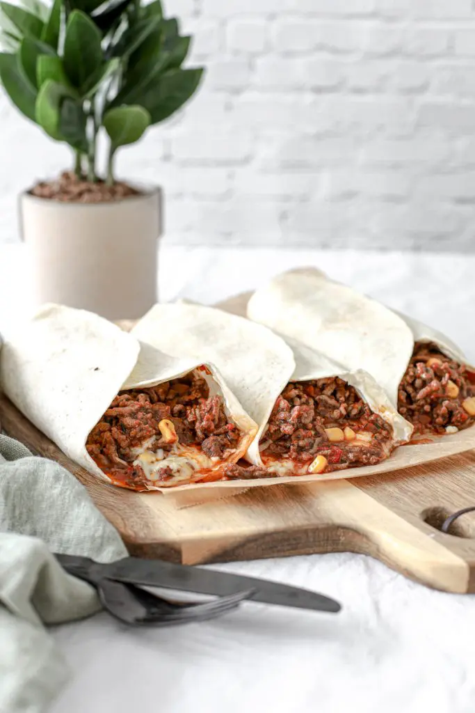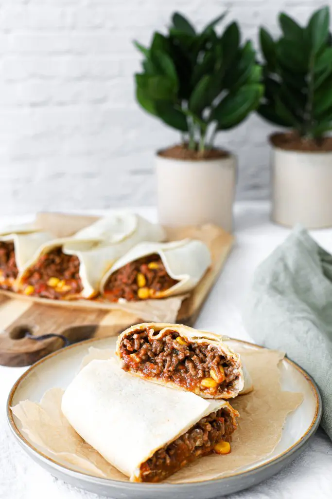 4. Setjið svo vel af hakkinu á miðja vefjuna og rúllið upp