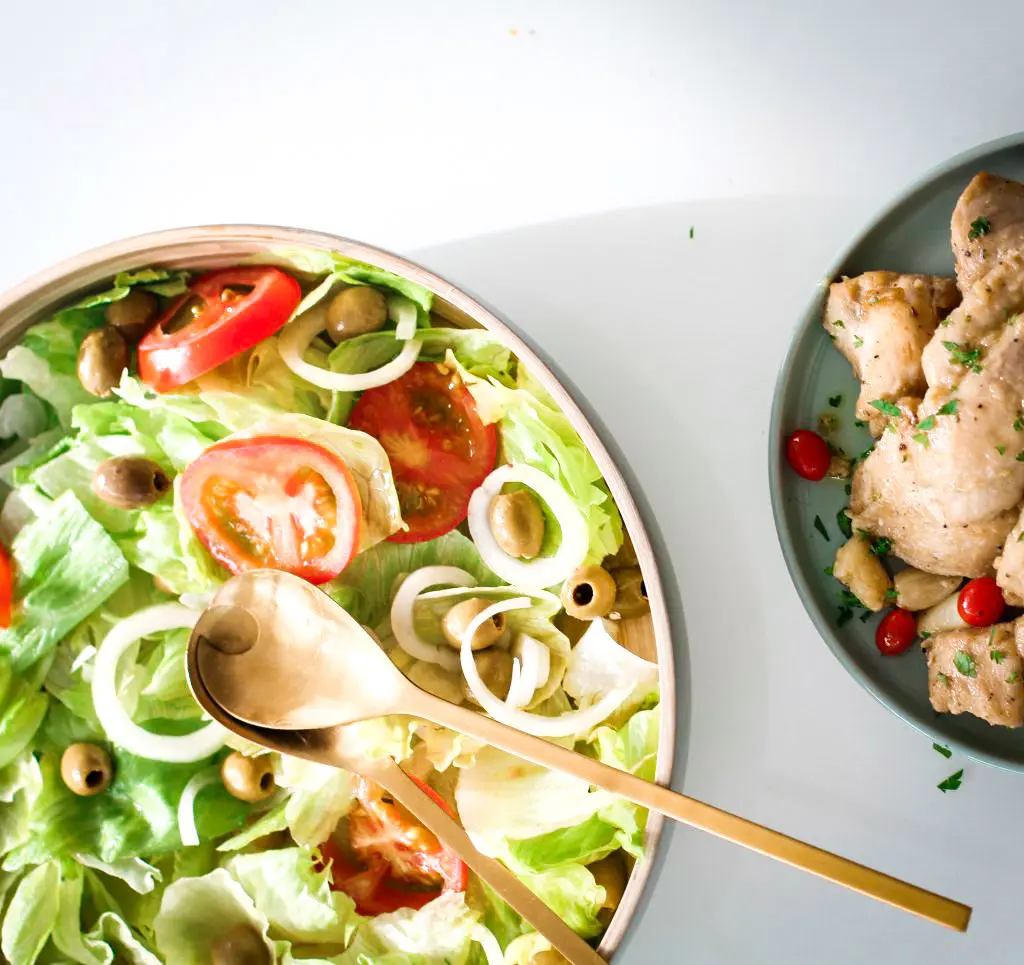 Ég mæli með því að hafa með honum spænskt salat upppskrift fyrir neðan. Svo er ekki verra að hafa gott snittubrauð með úr bakaríi eða sem þið bakið sjálf ,til að dýfa út í þessa geggjuðu hvítlaukssósu sem kemur af kjúllanum.