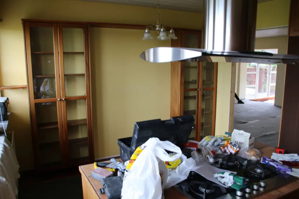 Í borðkróknum voru tveir veggfastir glerskápar sem við tókum burt og seldum.