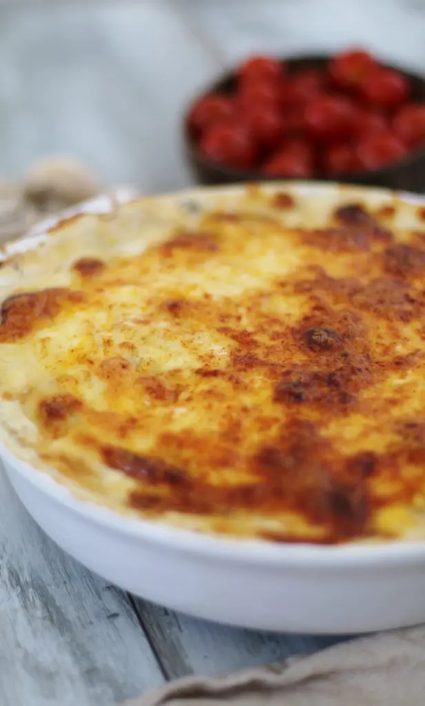 Meðan rétturinn er sjóðandi heitur myndast eins og vatnskennd sósa á botninn en alls ekki skilja hana eftir. Dreitlið sósunni yfir fiskinn því þar er mesta bragðið í réttinum. Sósan verður svo þykkari eftir því sem rétturinn kólnar.