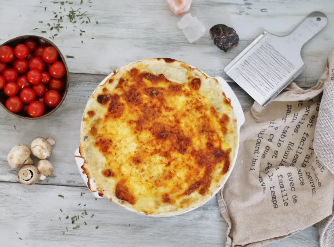 - Að lokum er svo rifnum osti stráð yfir og papríkudufti sáldrað létt yfir ostinn