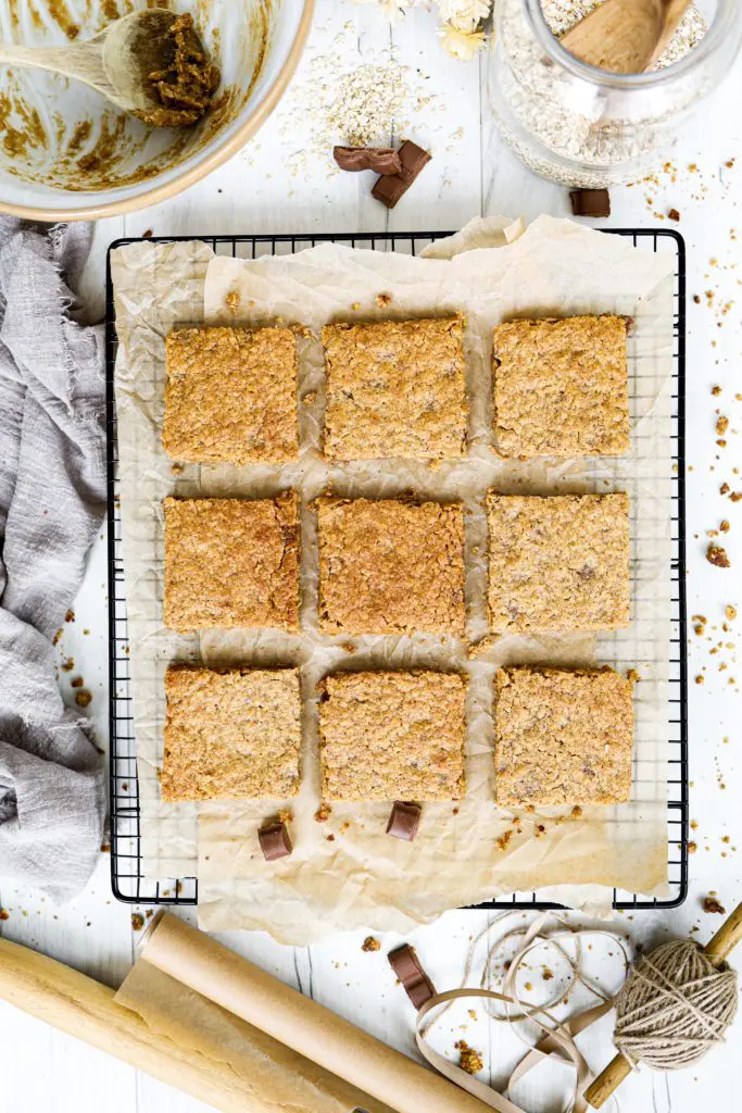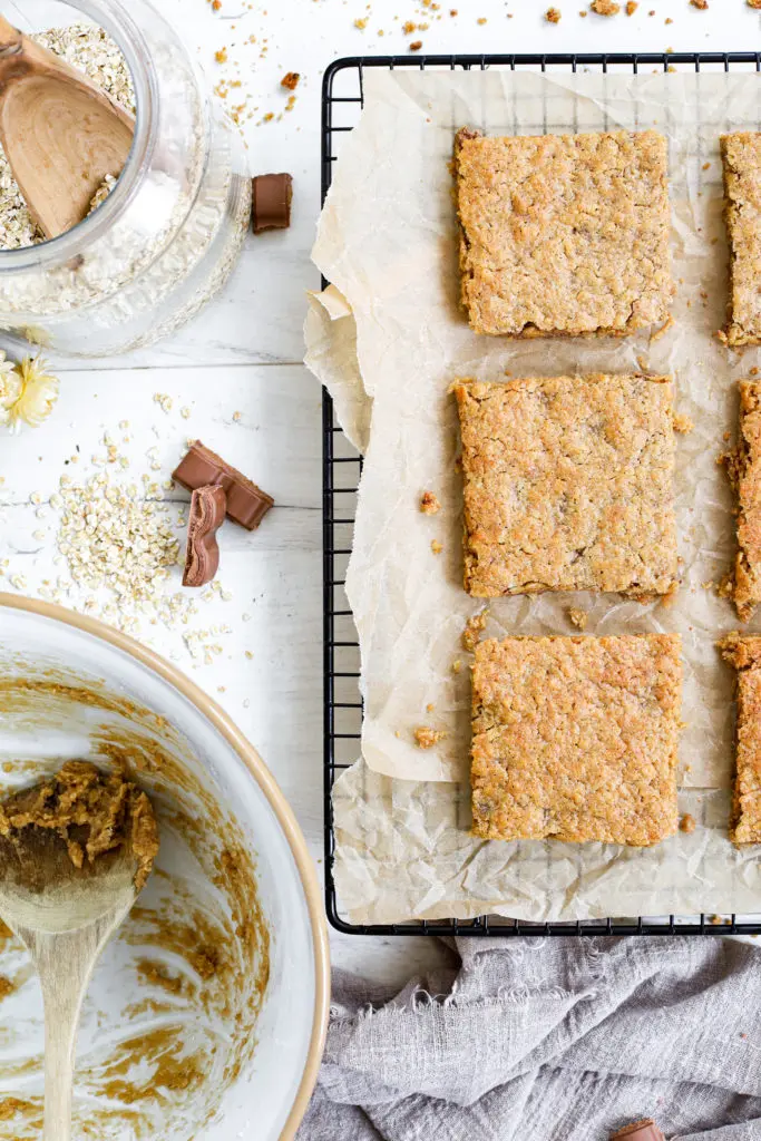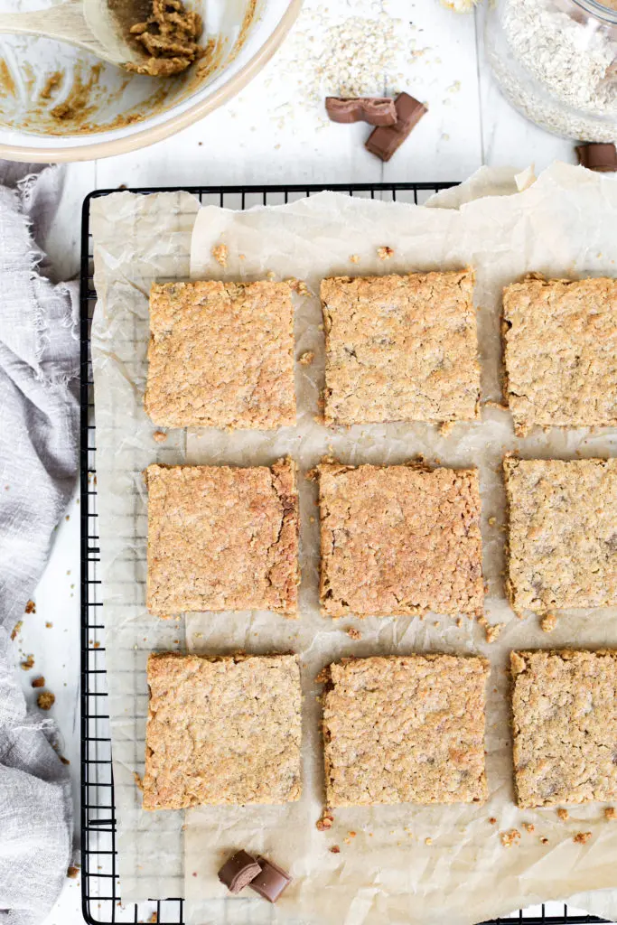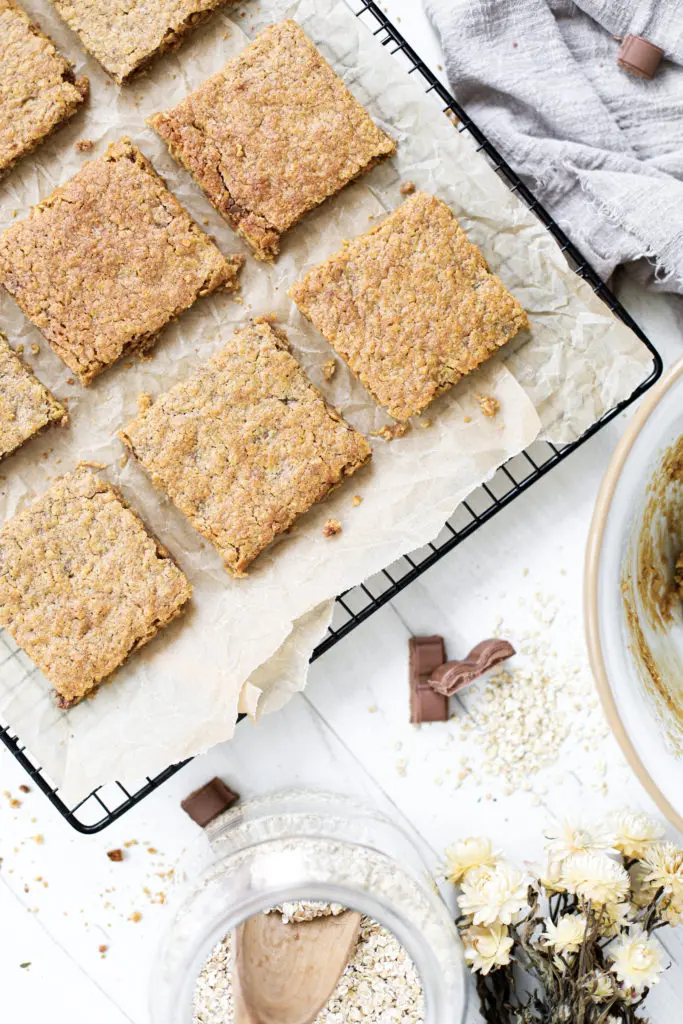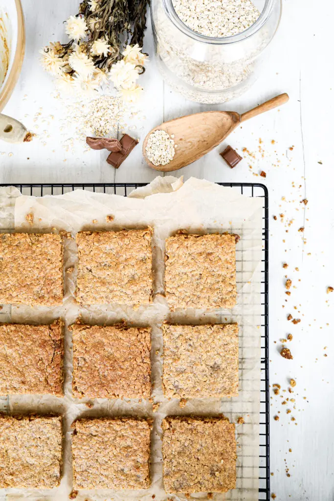 Fyrir mér er hinn fullkomni hafraklatti þungur í sér, með stökkri skorpu en rakur og klístraður inn í, með nóg af haframjöli og jú súkkulaði.