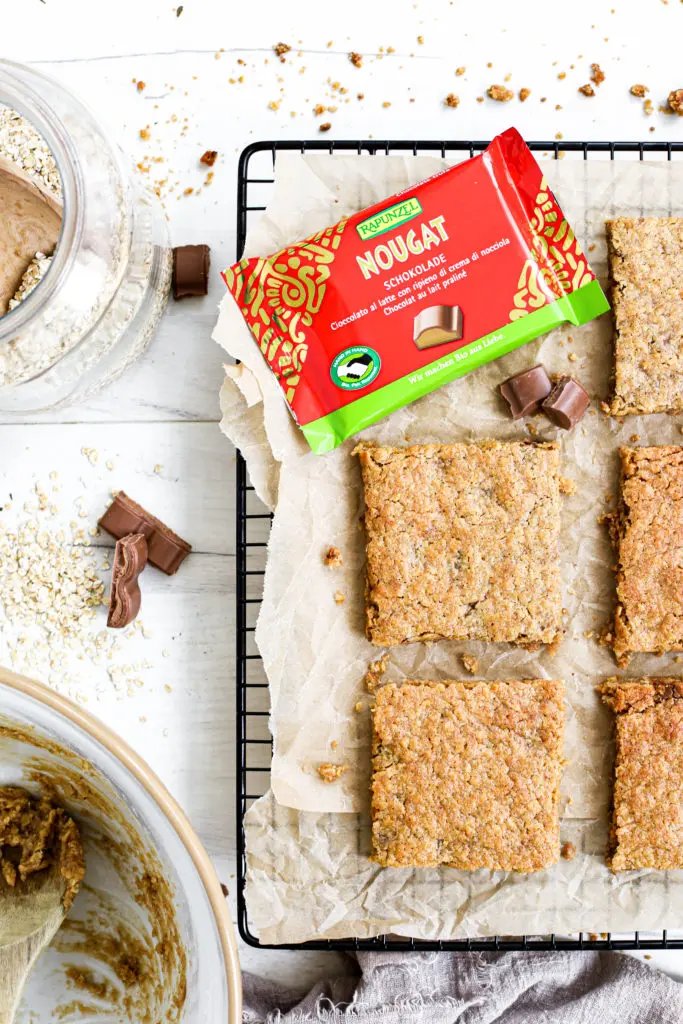 Aðalstjarnan í klöttunum er súkkulaði stykki frá Rapunzel sem er fyllt með nougat og guð hvað það gerir mikið fyrir klattana.