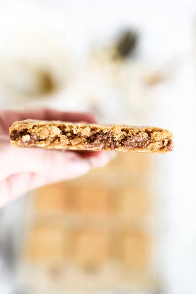 - Takið svo úr ofninum og kælið í eins og 20 mínútur áður en þið skerið svo í ferninga á stærð við Poylaroid mynd, megið líka hafa þá minni en þetta er svona bakarís stærð
