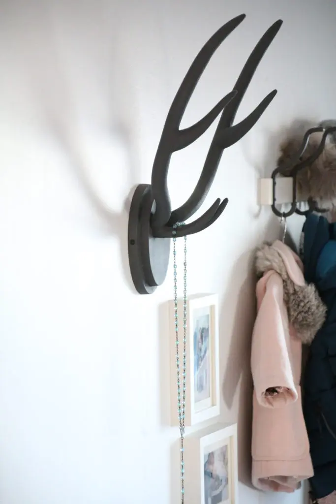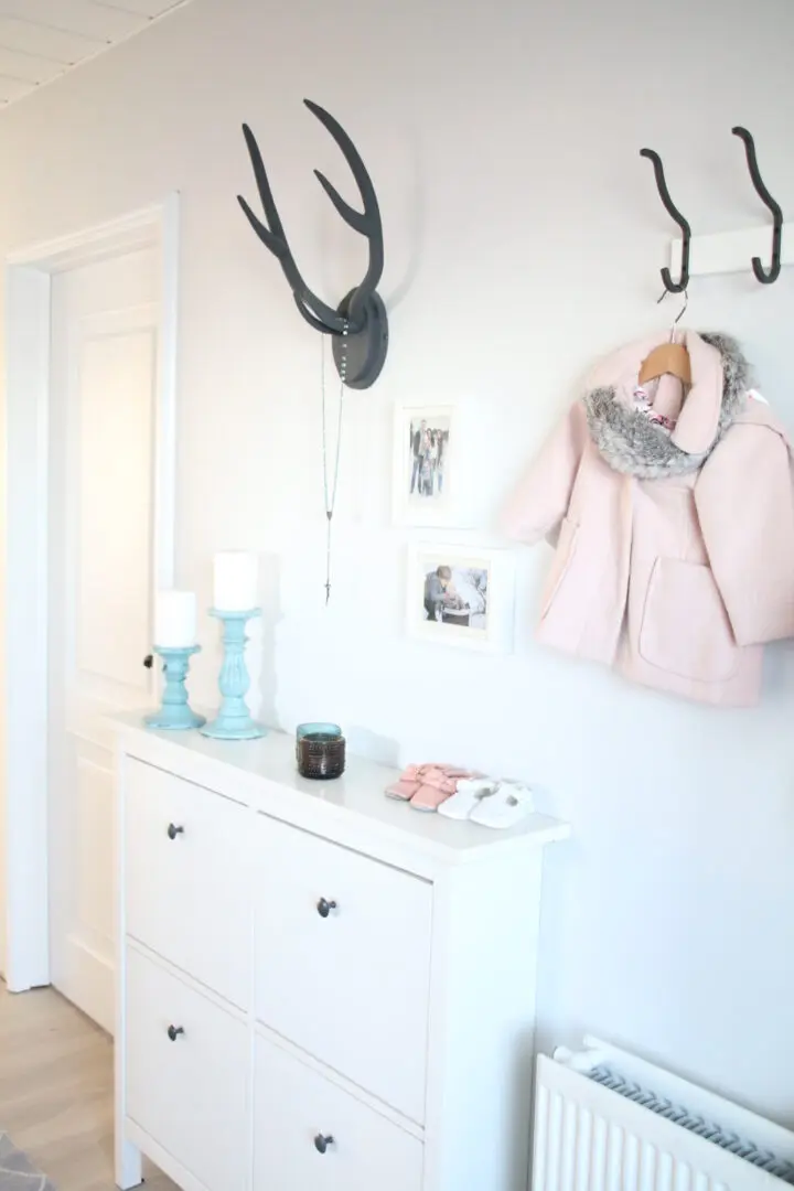 Svo koma hér detailar úr forstofunni en mér finnst gaman að skreyta með barnaskóm og fallegum kápum.