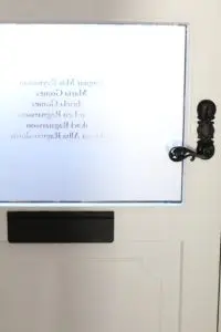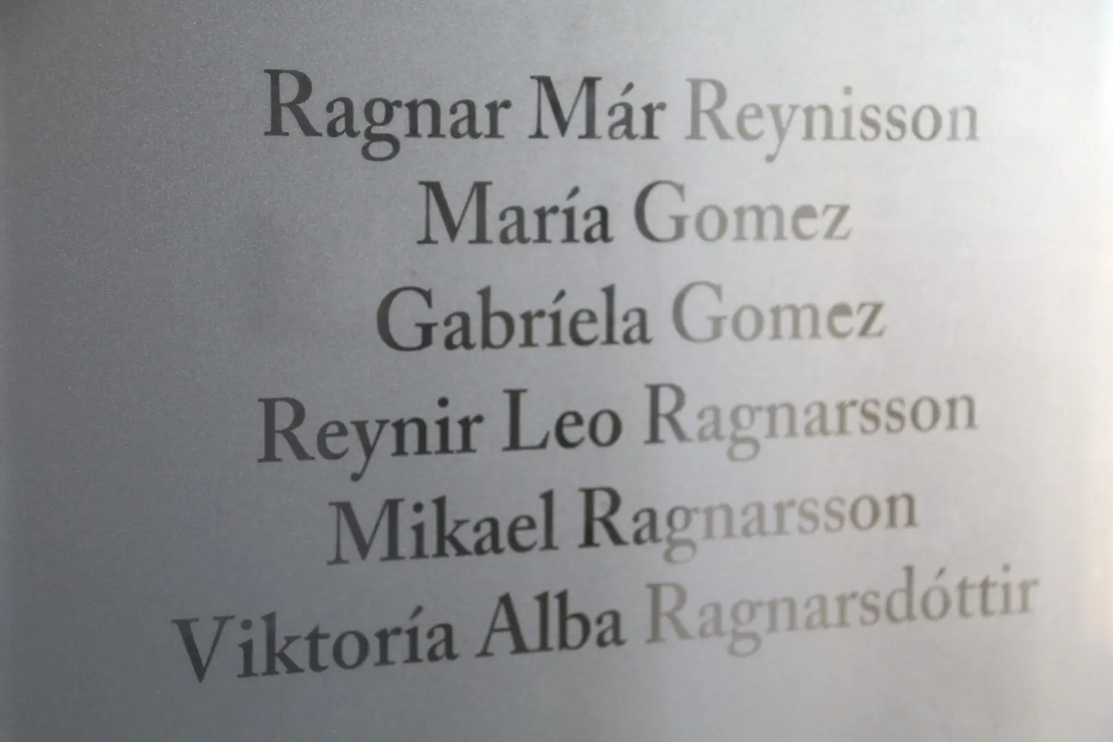Húrðarhúnarnir og bréfalúgan orðið svart og nýtt gler með okkar nöfnum komið í.
