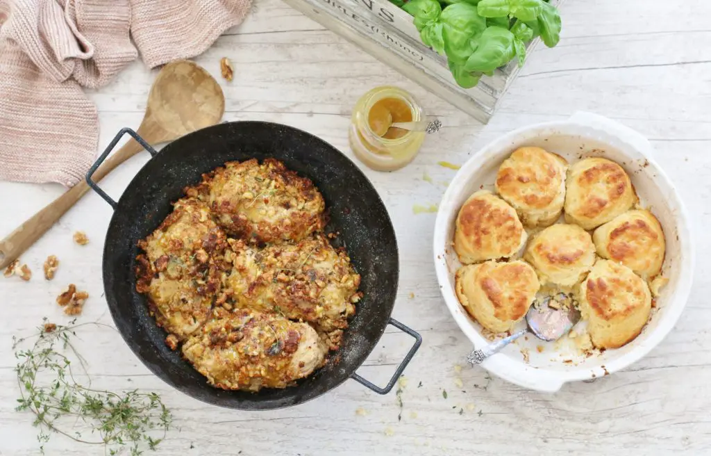 Þetta Ameríska kexbrauð er rosalega gott með kjúklingnum