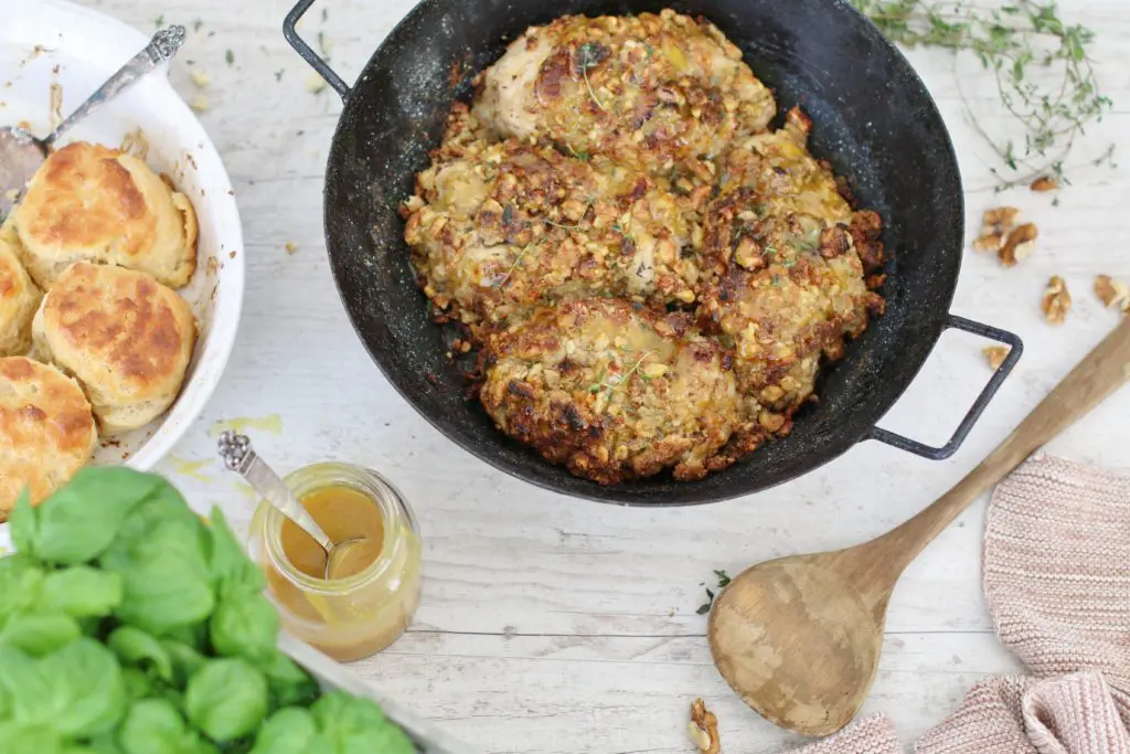 Hægt er að hafa hann jafnt spari sem og hversdags. Borinn fram með sinnepsgljáa, dásamlegu kexbrauði og fersku salati fullkomnar máltíðina. Uppskrift af brauðinu má finna hér.