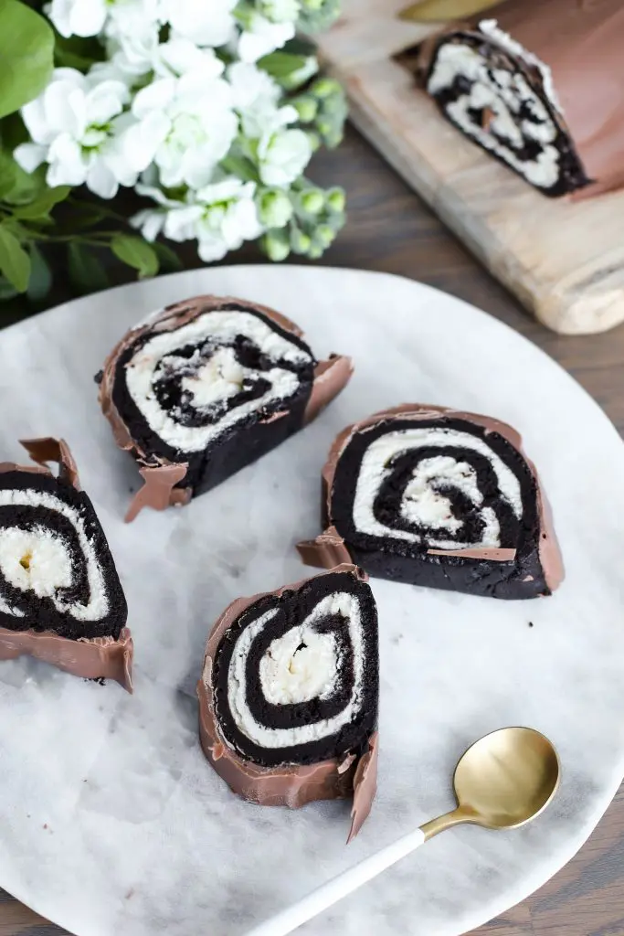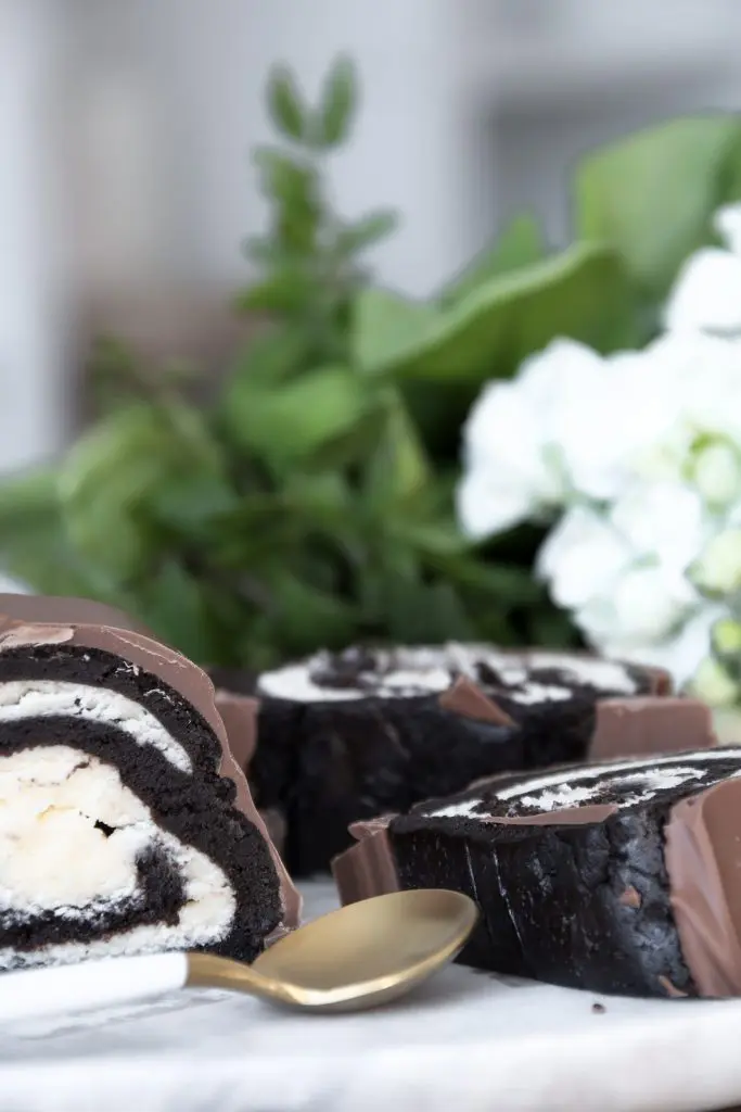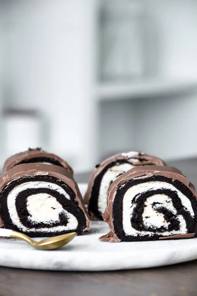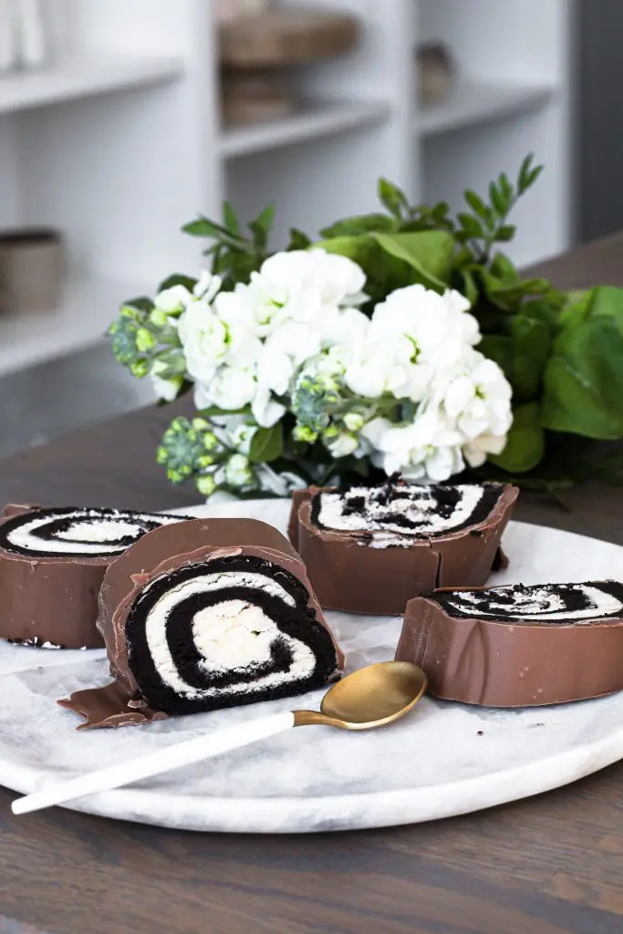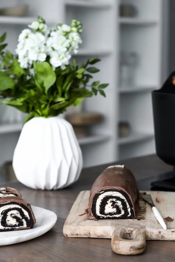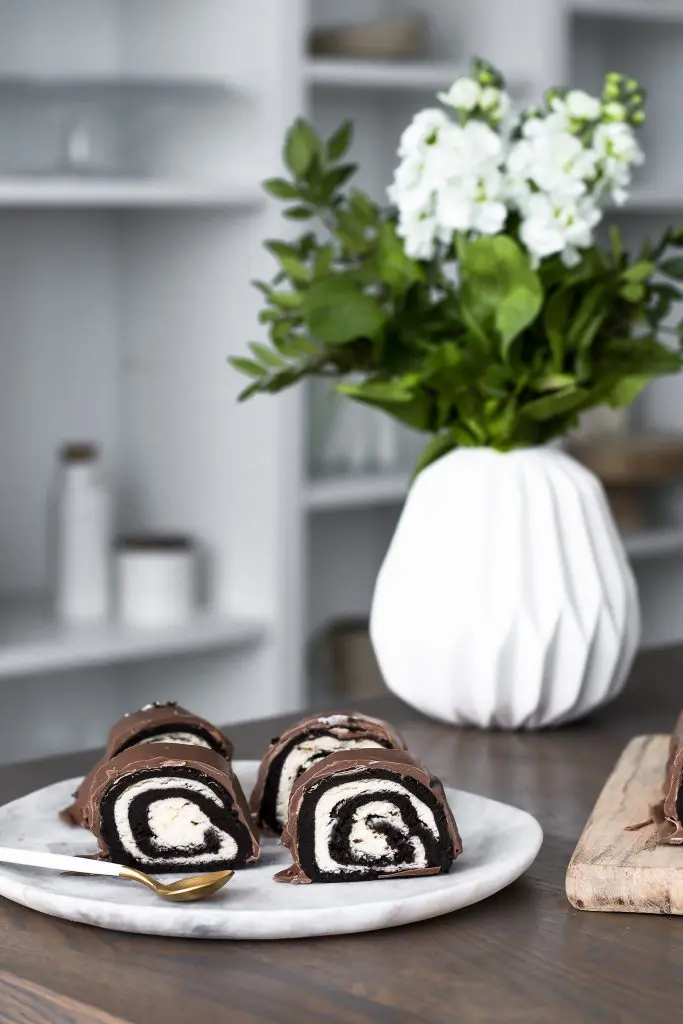 Ég held það sé óhætt að segja að þessi Oreo rúlluterta sé algjört nammi. Ég mæli með því að bera hana fram beint úr frystinum.